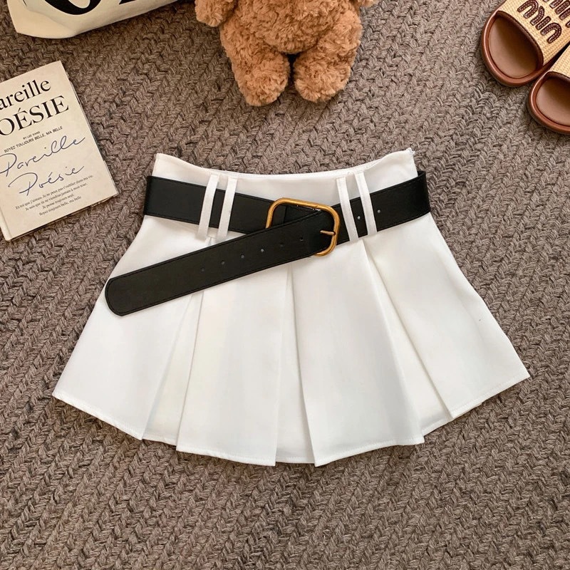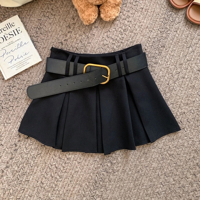 女の子の春と秋の新型百パートナーのスカートのファッション的な双ベルトは腰の高い半身のスカートを緩めて、光の百パートナーのスカートのa字のスカートを防ぎます。