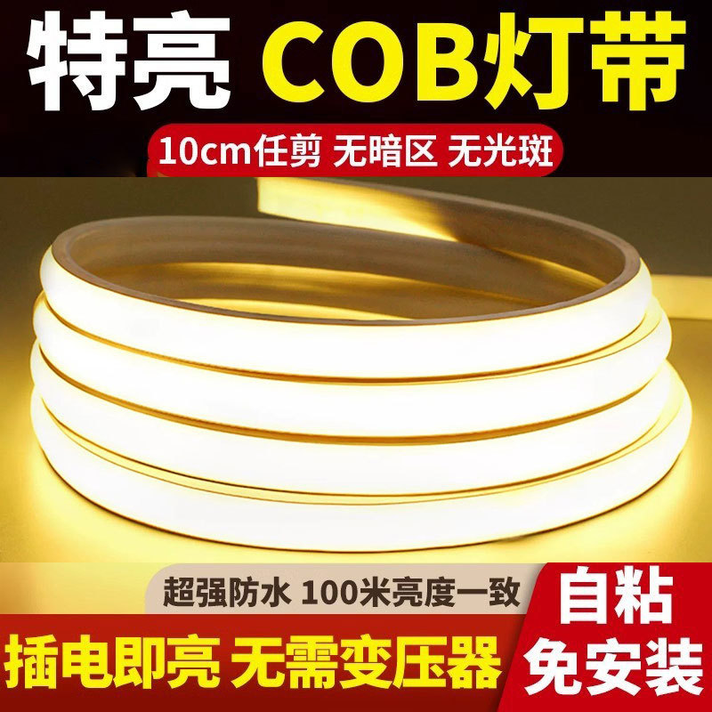 COBライトテープ 自己粘着 超高輝度 線形ライトトラック リビングルーム 天井 220v 防水 シリコン cob 高電圧 屋外ライトテープ