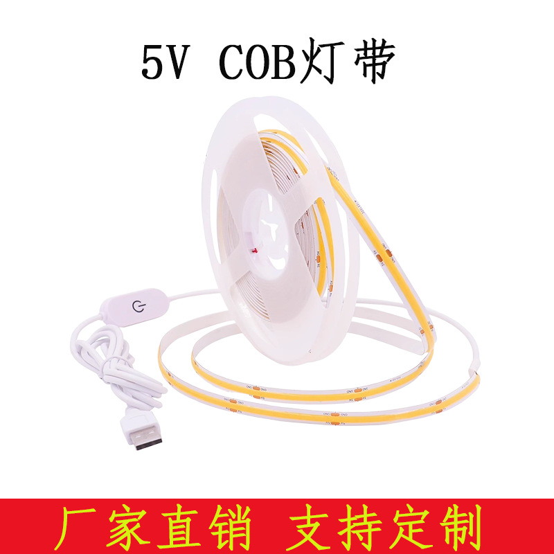 COBライト、タッチスイッチ、USB、ライン型ライト、ワインキャビネット、食器棚、リビングルーム、フレキシブル、ソフト、粘着式、5V低電圧LEDライトストリップ