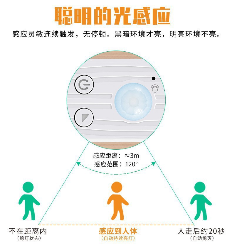 过道无线人体感应灯带硅胶防水玄关走廊LED自粘 楼梯感应灯带