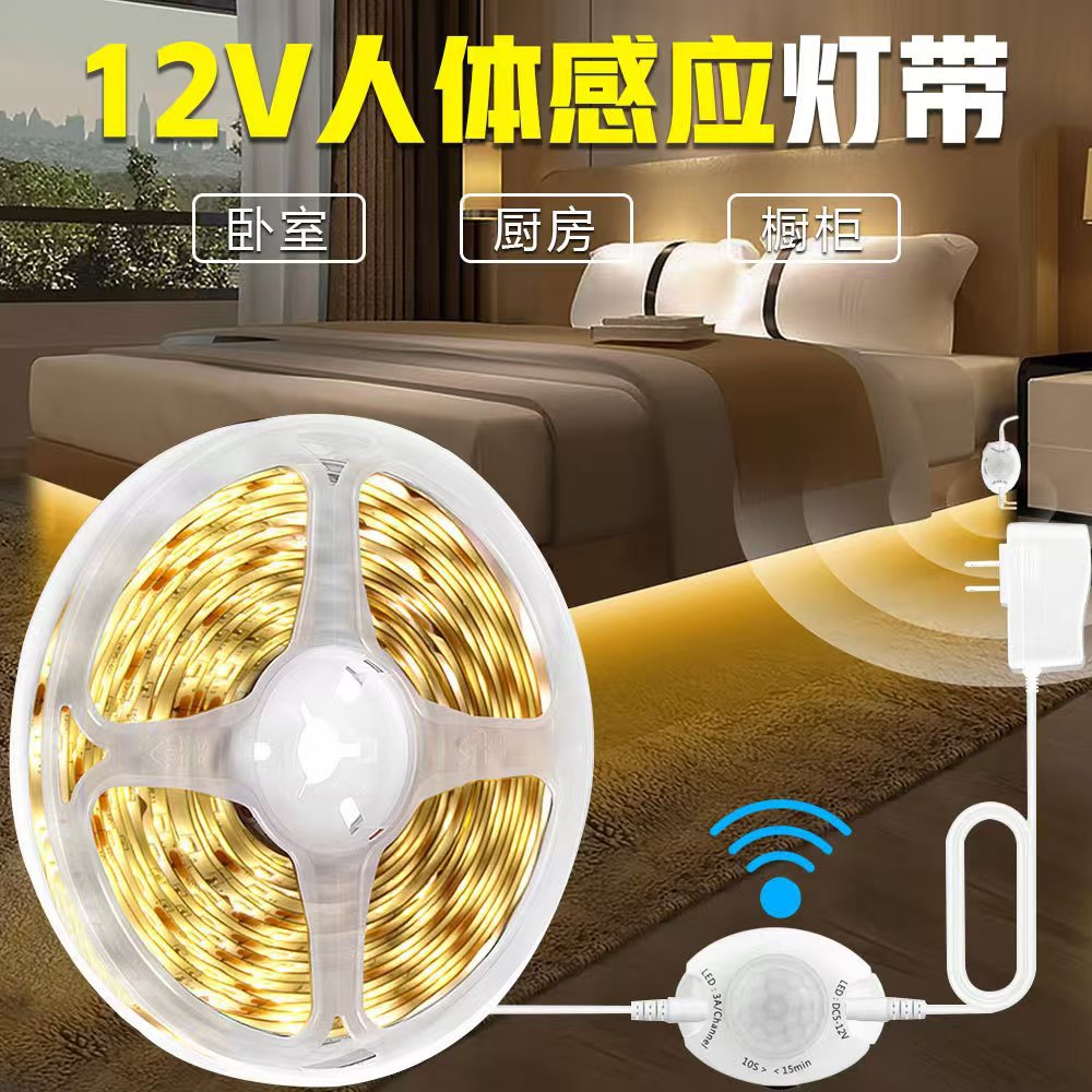 DC12V亚马逊床底灯带智能光控感应衣橱柜红外人体 龟背感应灯带