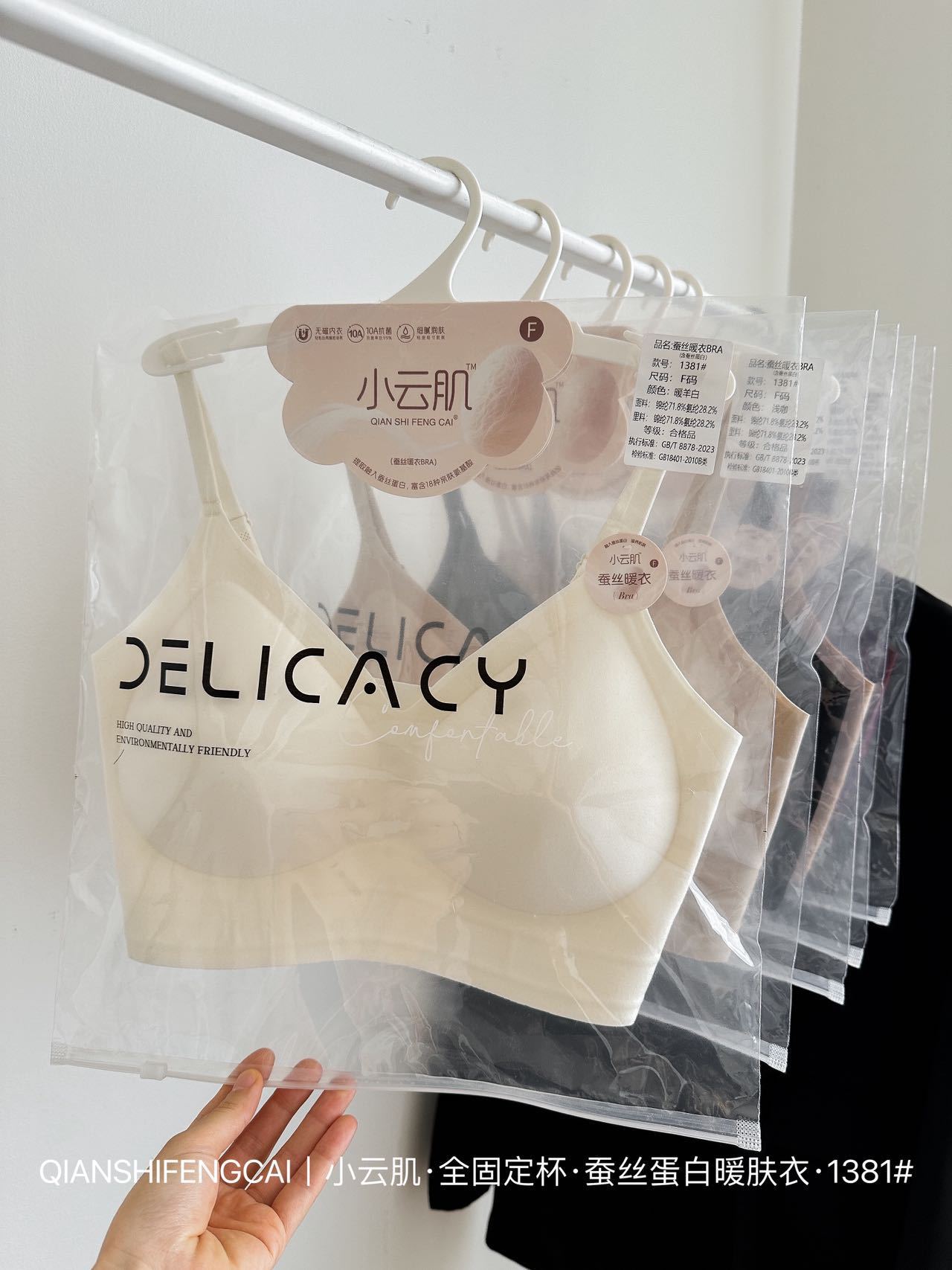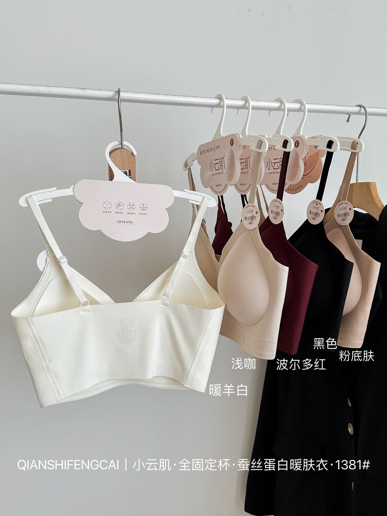 女士小云肌无痕细肩带无磁蚕丝蛋白暖肤衣无钢圈固定杯1381美背