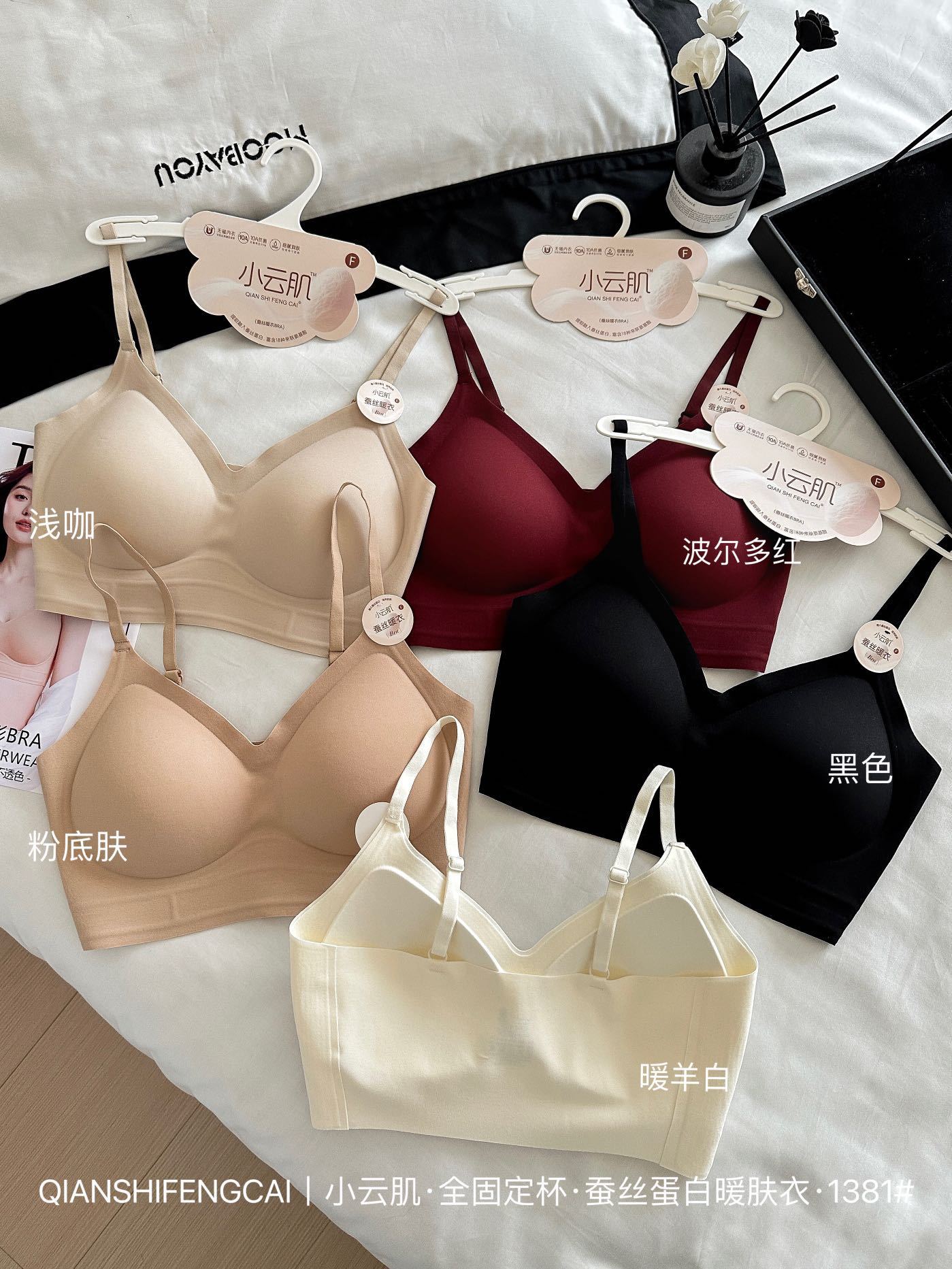 秋冬款粉底液磨毛暖肤少女内衣固定杯侧收无痕聚拢小云肌背心1381