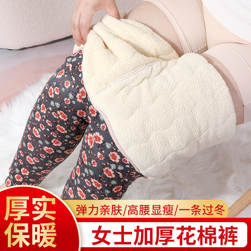 キャメル保温ズボンの女性の花のシャツの外に厚いベルベットの綿のズボンを着て腰を上げて秋のズボンを打つ秋冬の女性の綿のズボン