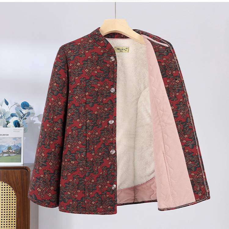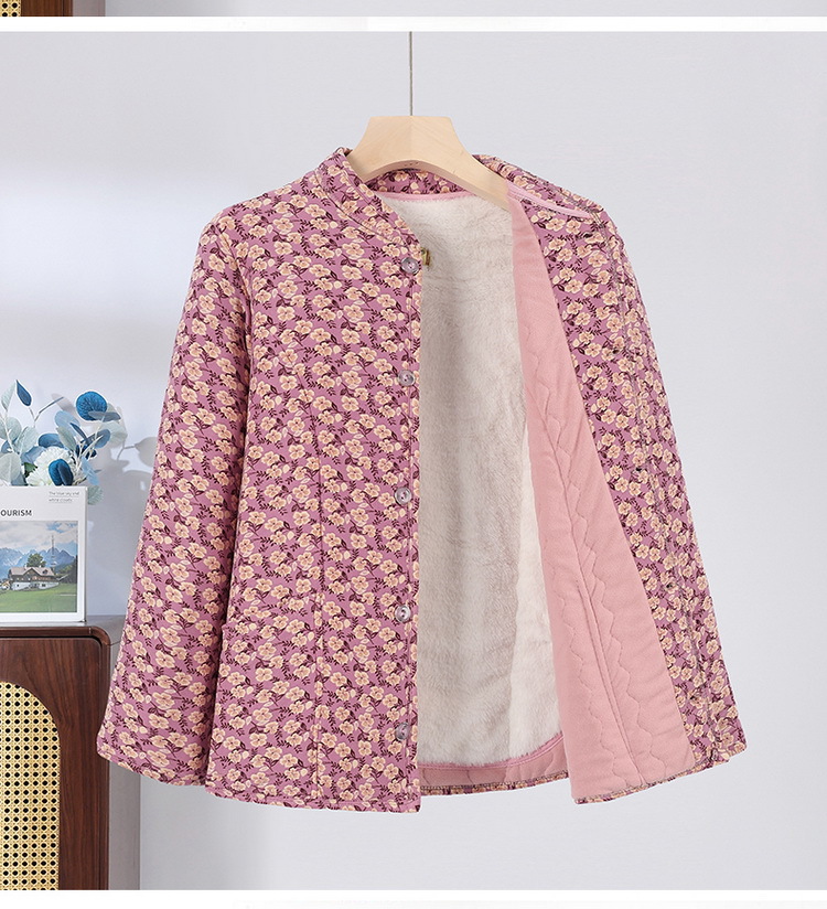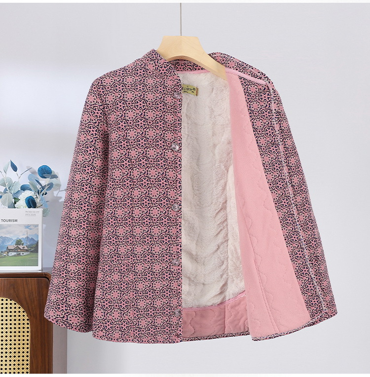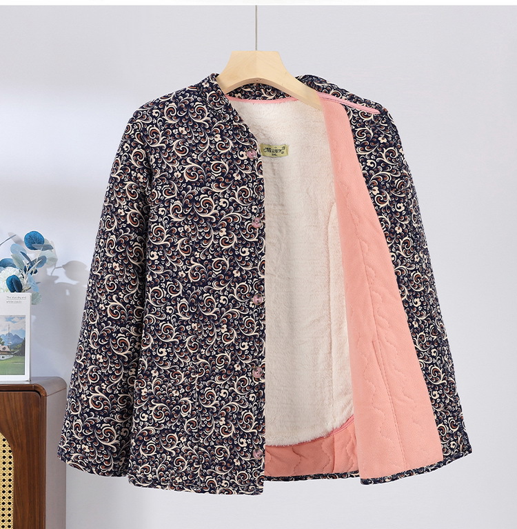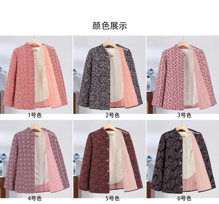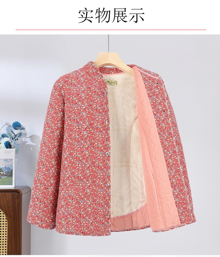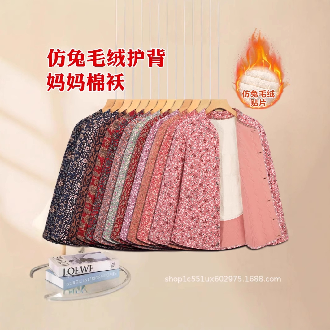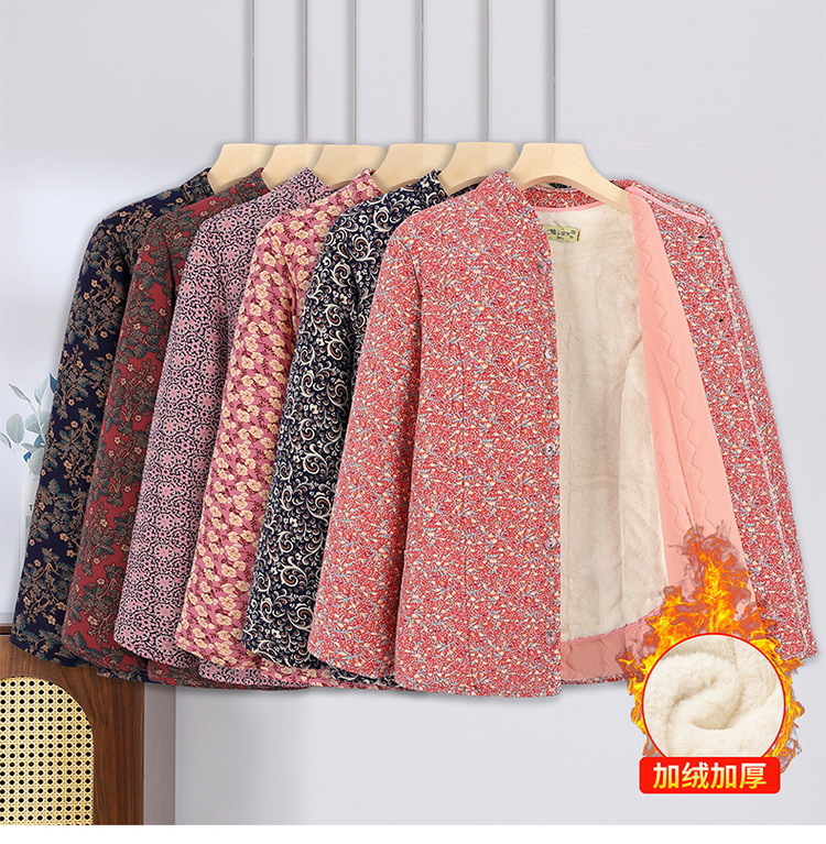 中老年妈妈秋冬保暖驼绒棉衣碎花棉袄女奶奶装外套加绒加厚棉服女