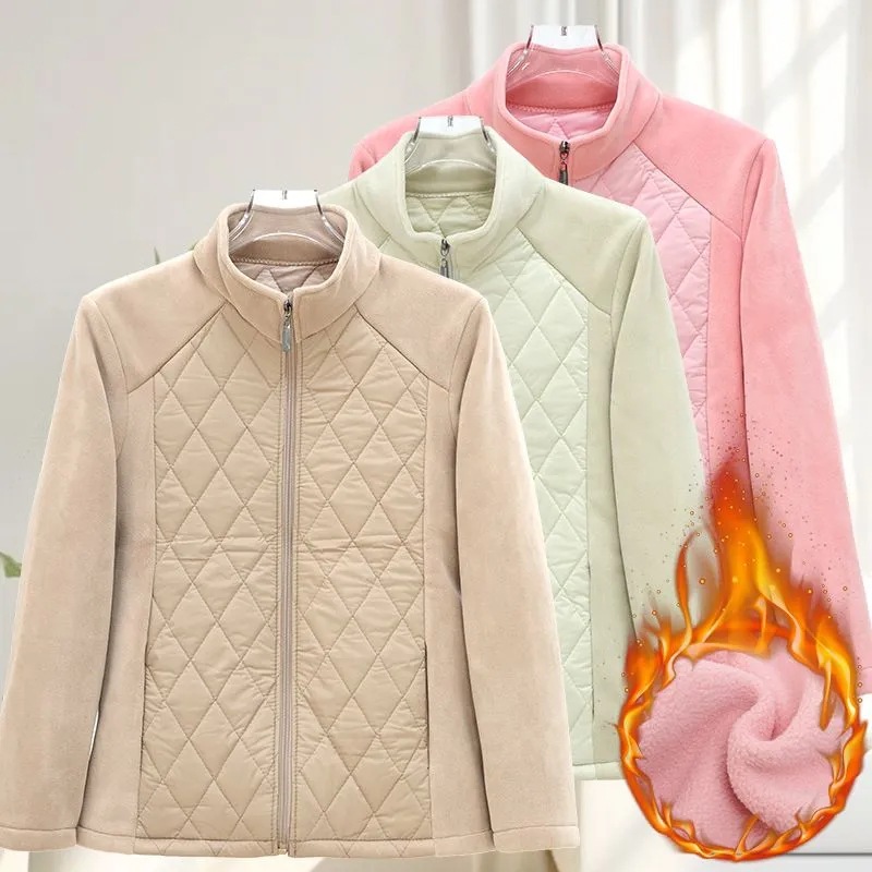 妈妈装秋冬休闲加绒外套连帽上衣女士保暖颗粒绒大码加厚女士棉衣