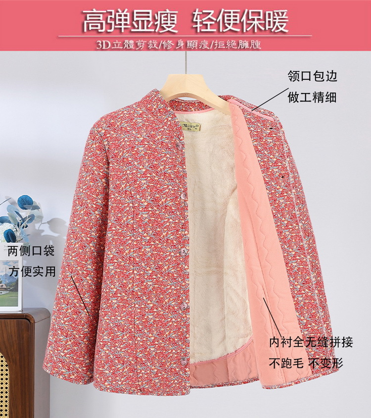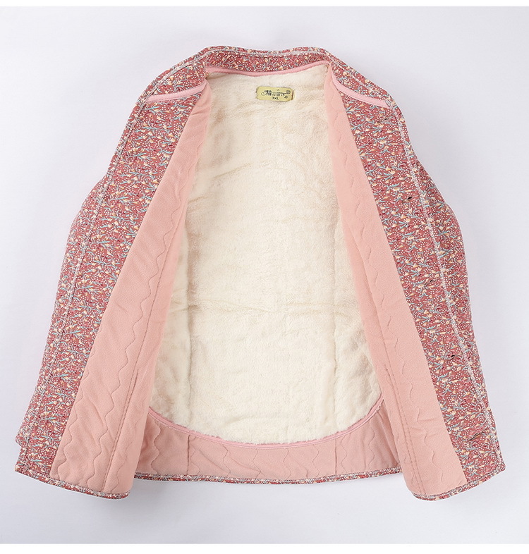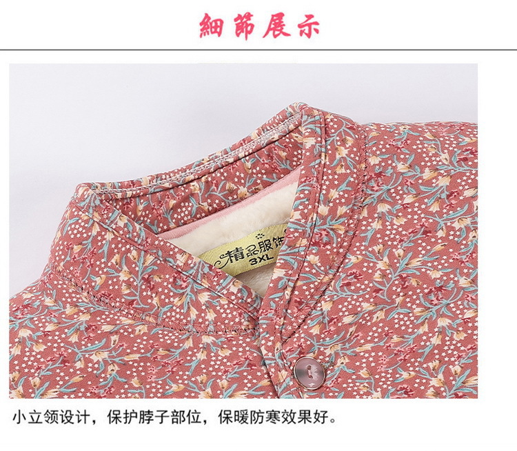 严选中老年妈妈秋冬保暖驼绒棉衣碎花棉袄女奶奶外套加绒加厚棉服