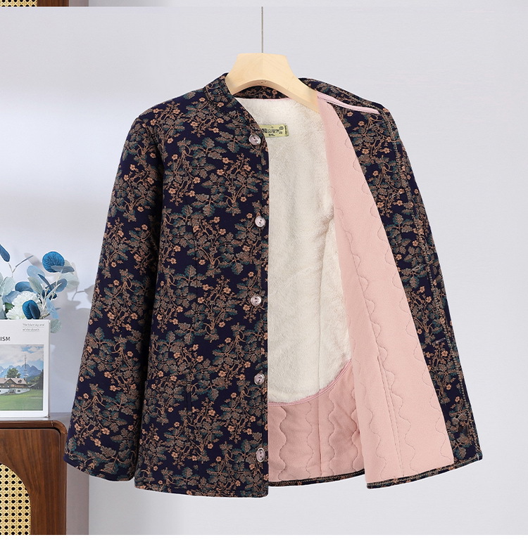 中老年2024秋冬加厚保暖妈妈装中国风名族风碎花棉袄大码女