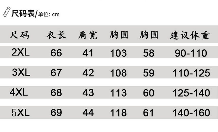 尺码 3XL90-115斤),4XL(120-140斤),5XL(140-165斤)
