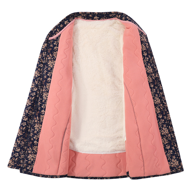 冬の厚手の保温綿服の中で、年配の女性とベルベットの大きいサイズの花の小さい綿入れの上着の長袖のお母さんは綿入れの服を詰めます。