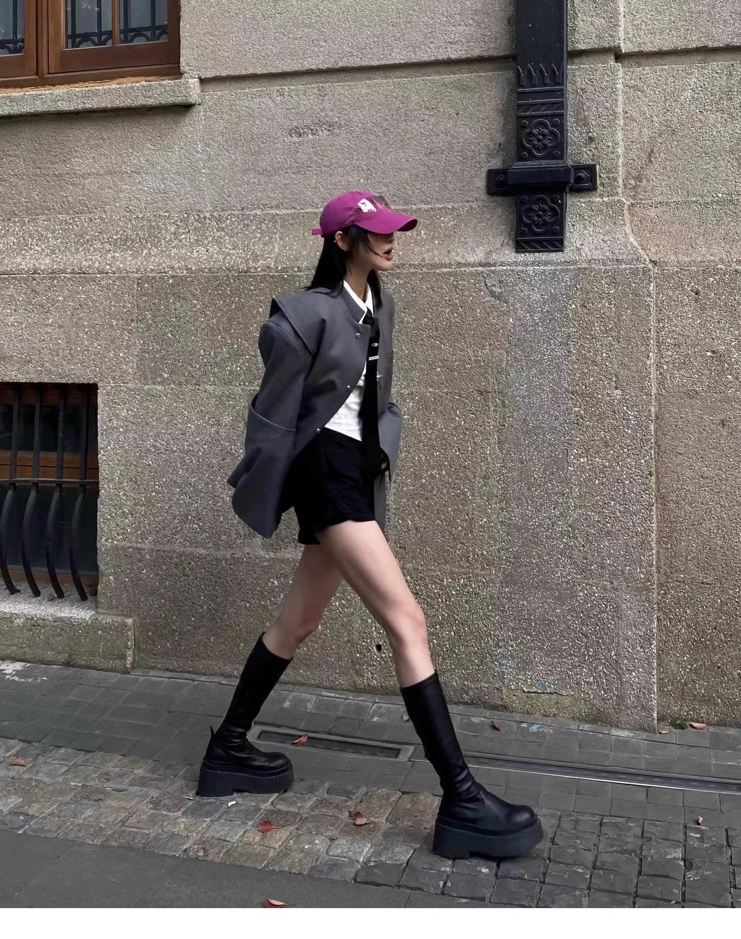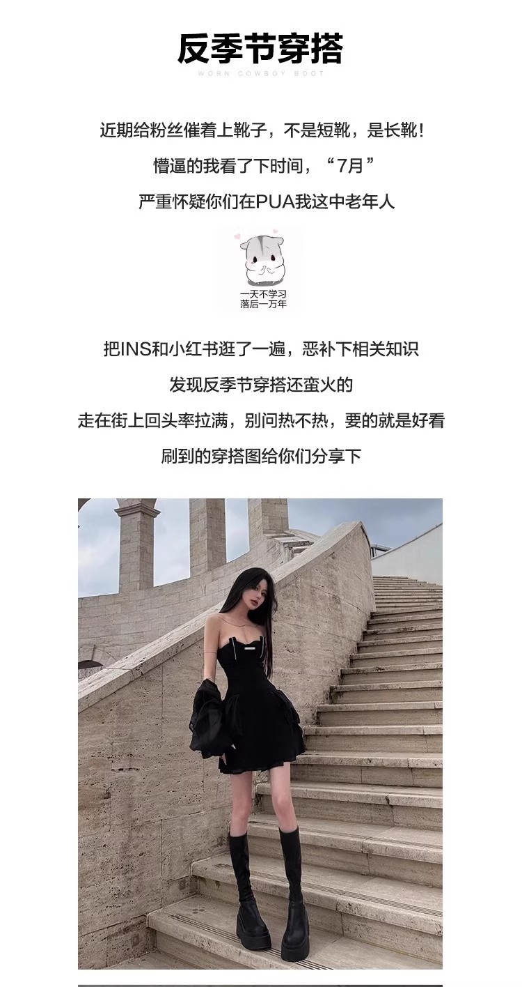 国潮小个子骑士靴子今年流行高筒不过膝黑色粗跟堆堆长筒靴瘦瘦靴