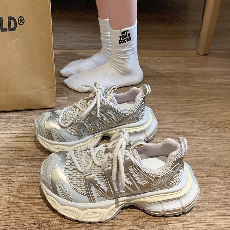 2025年流行のレディースダッドシューズ、メッシュ素材のカジュアルランニングシューズ、万能な厚底通気性シューズ、インスタ映えD-4