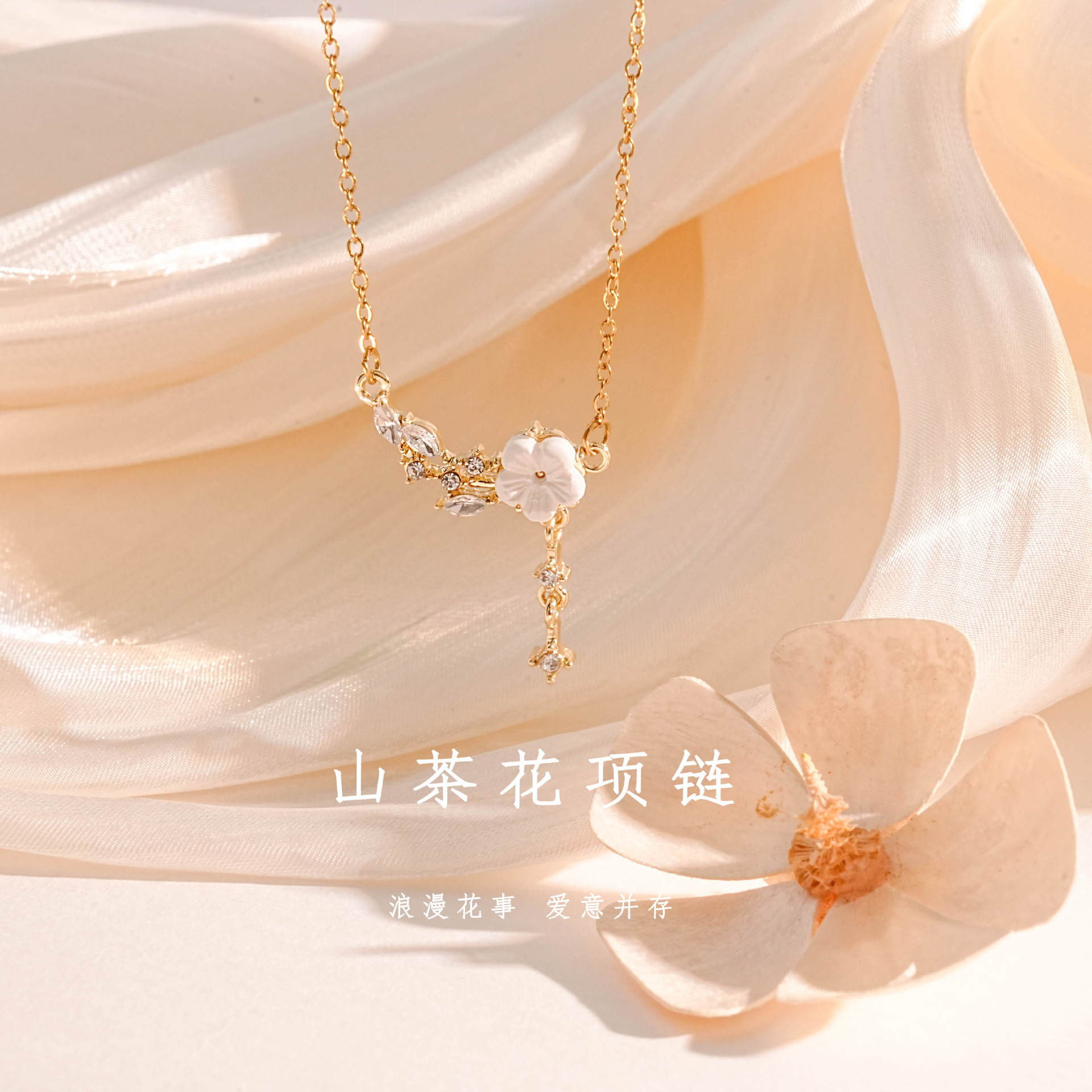 女性用のハイエンドの椿ジルコンネックレス、軽くて豪華なニッチデザイン、甘くて絶妙な鎖骨チェーンジュエリーギフト