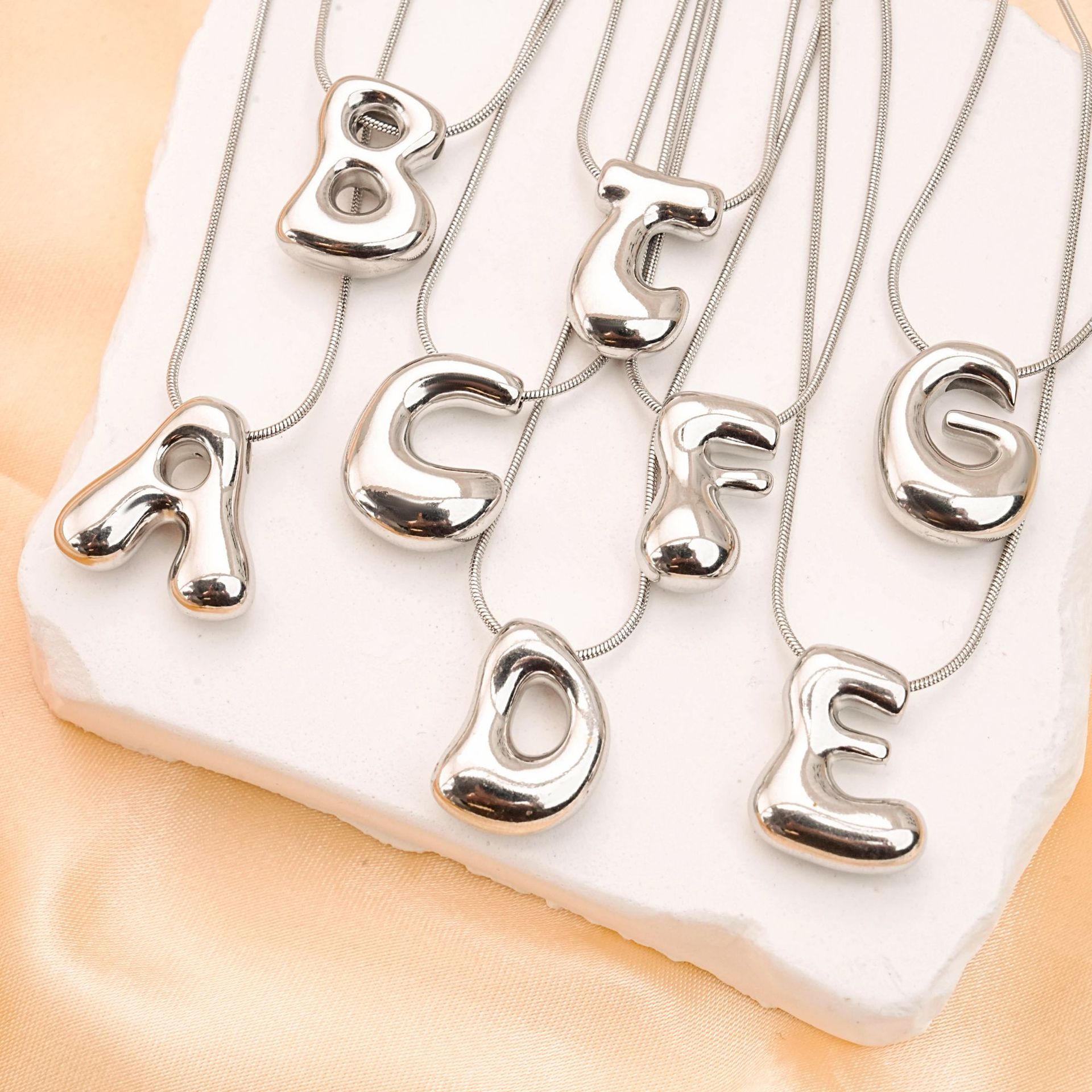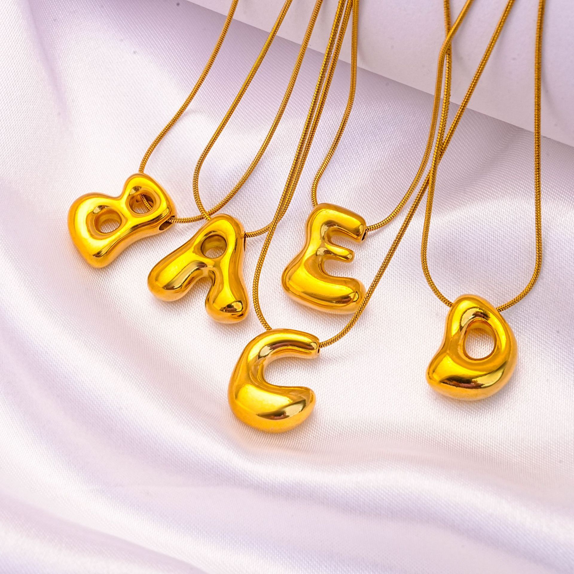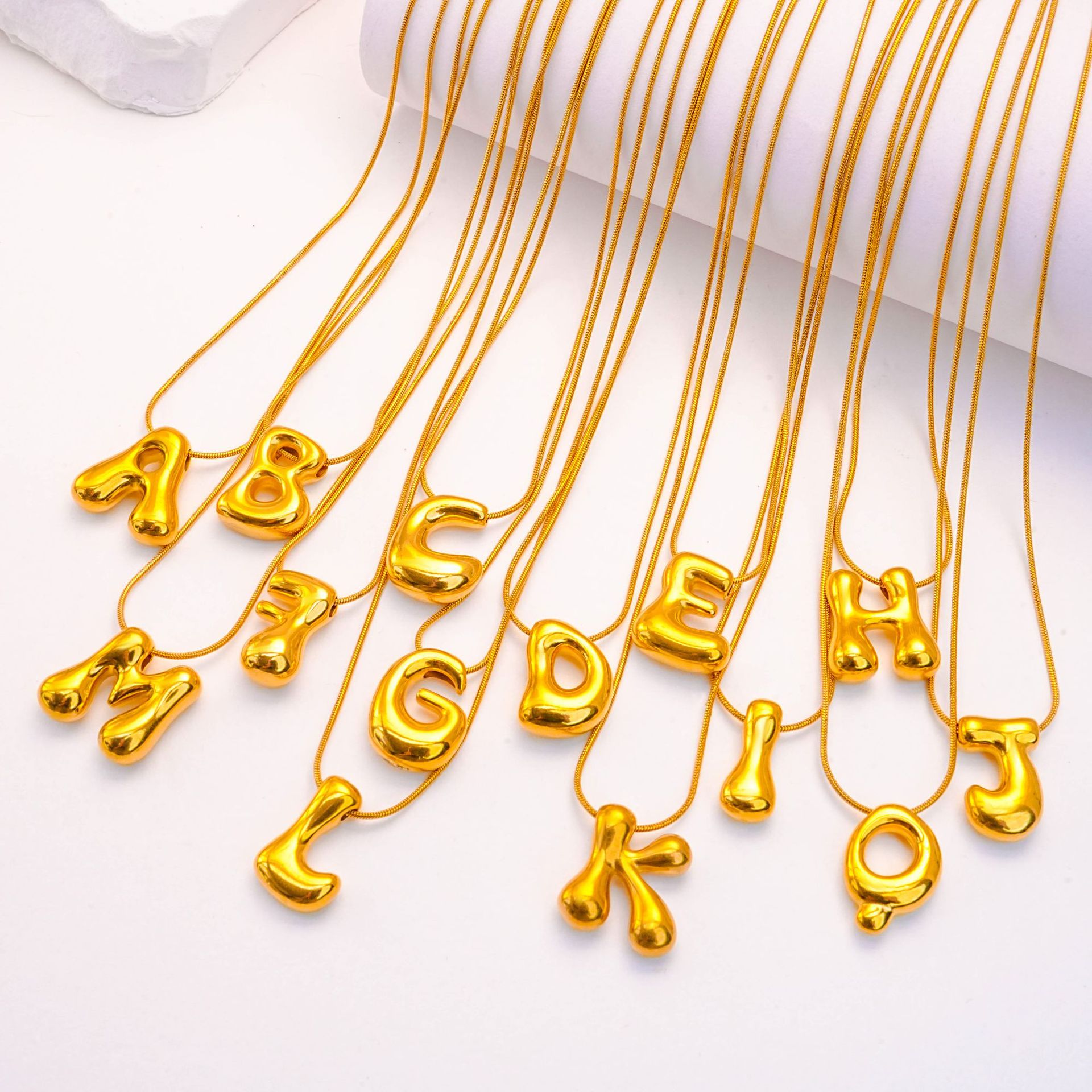 国境を越えたバルーンバブルぽっちゃり26文字ネックレスステンレス製本金メッキペンダントネックレス欧米卸売