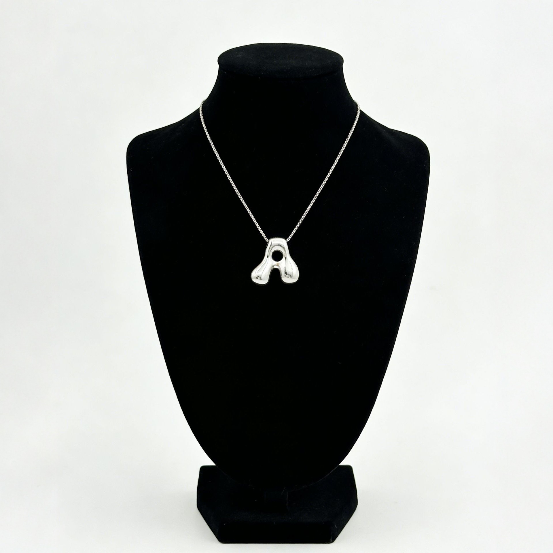 简约时尚光面气球气泡字母女项链气质嘻哈银色26字母吊坠项链饰品