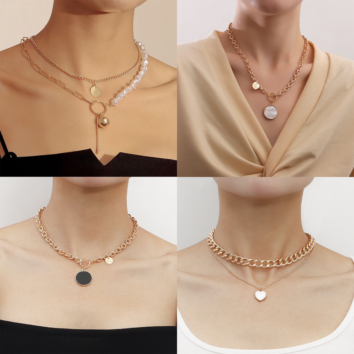 欧米のクロスボーダーのアクセサリーINSクロスの愛の貝の母の首のチェーンのネックレスの女性の毛の服のチェーンのファッションの百合の装飾品の卸売り