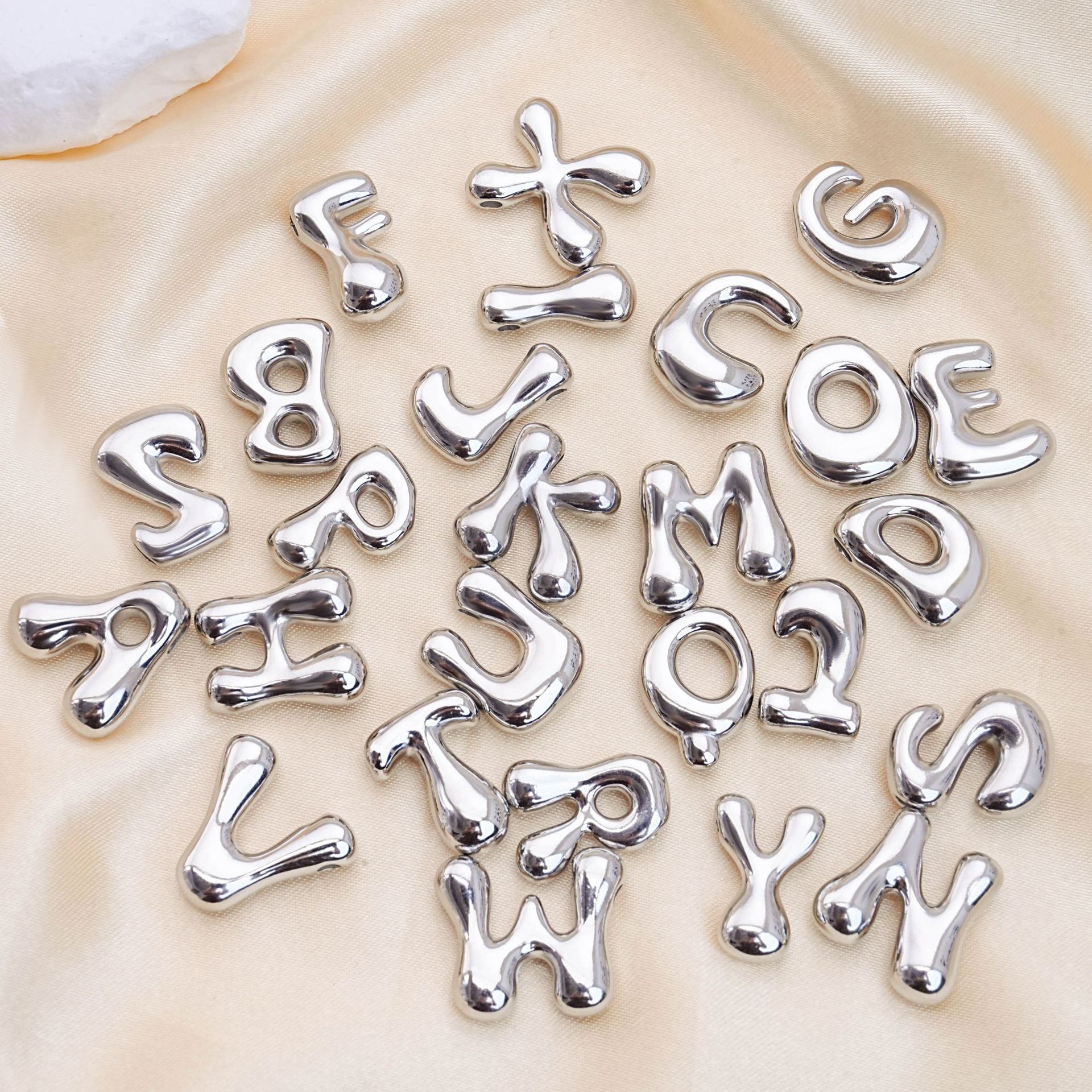 欧美跨境26个Q版英文字母配件不锈钢气泡字母项链手链吊坠饰品女