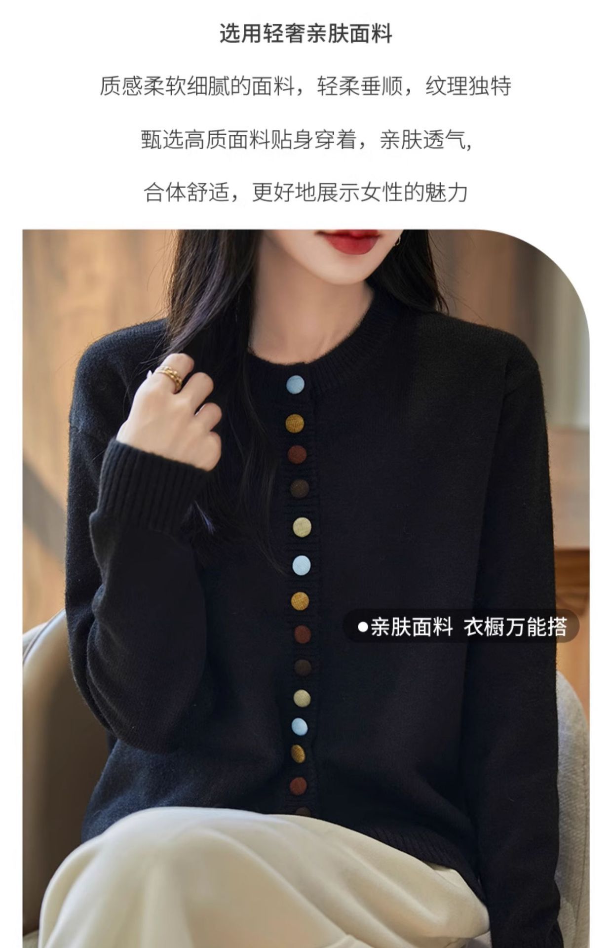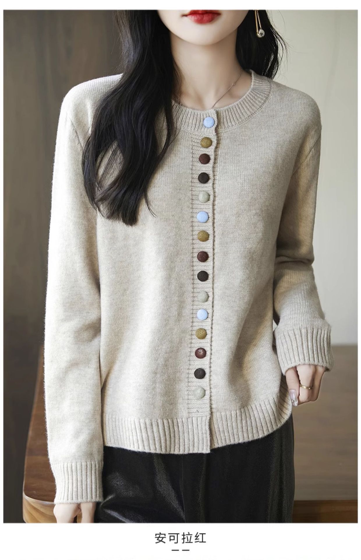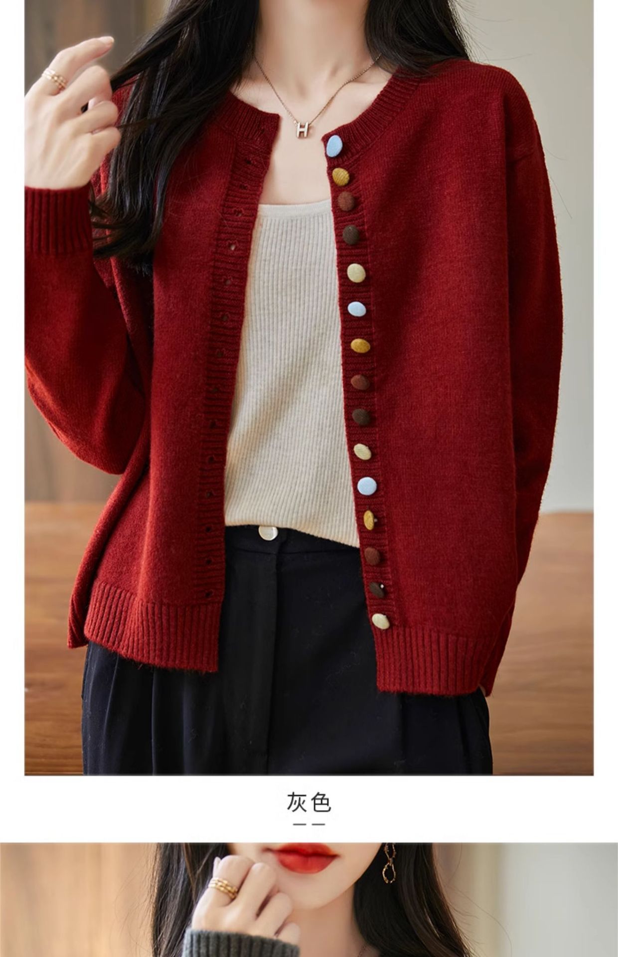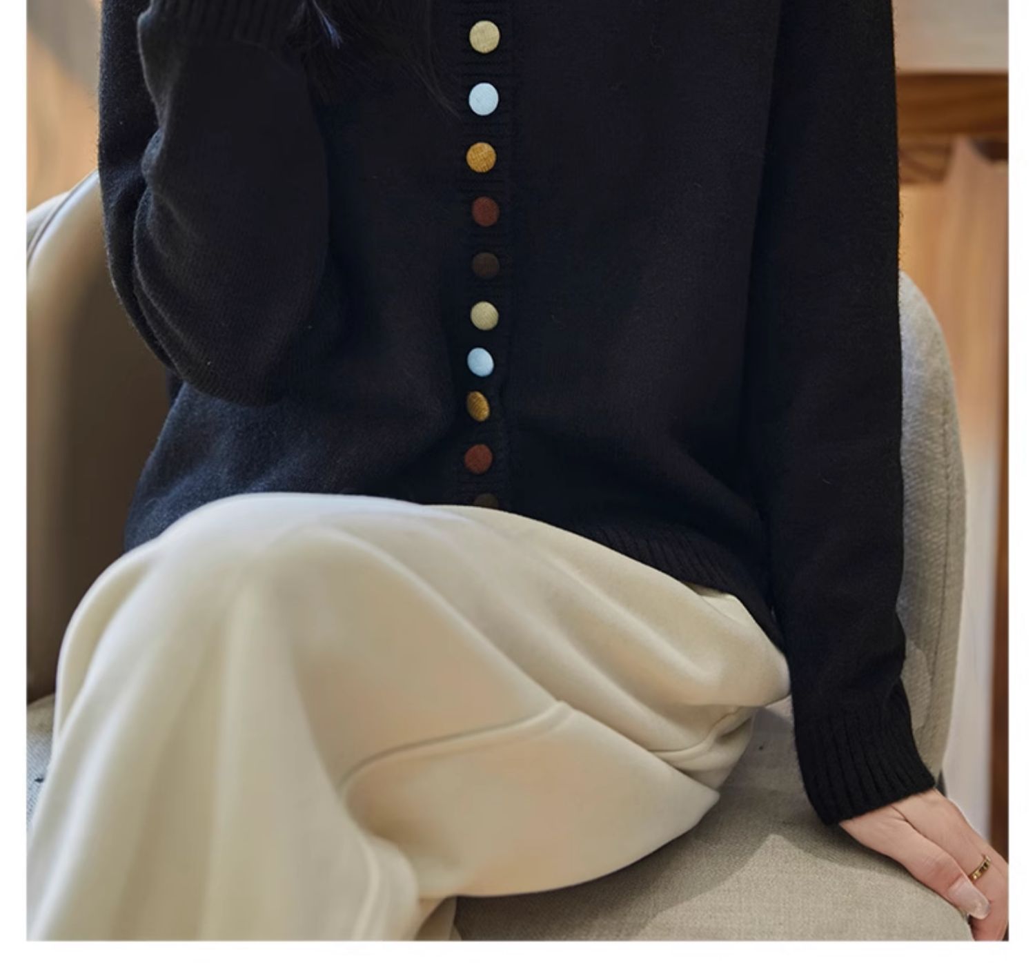 圆领洋气开衫外套女秋季女装彩色扣子撞色文艺范宽松百搭针织上衣