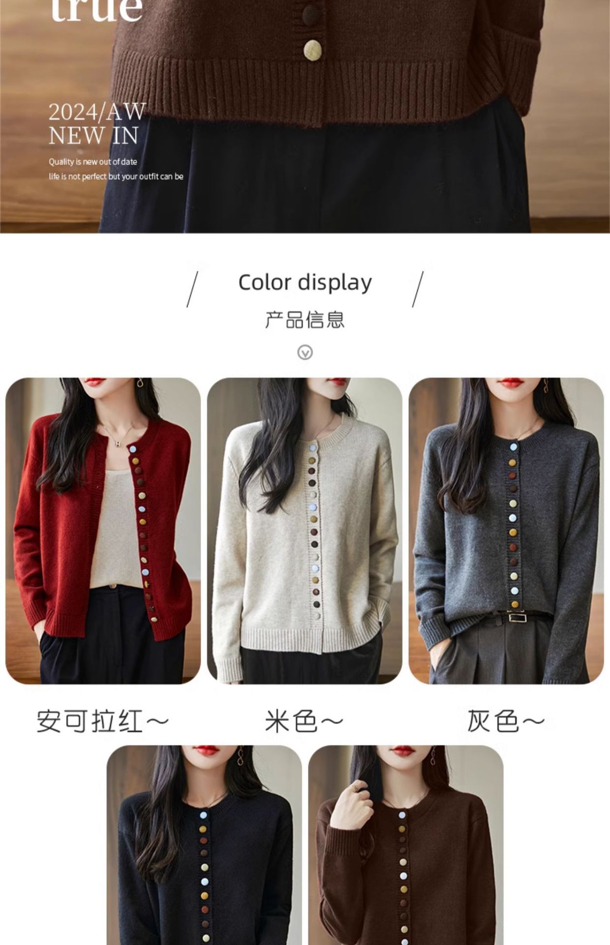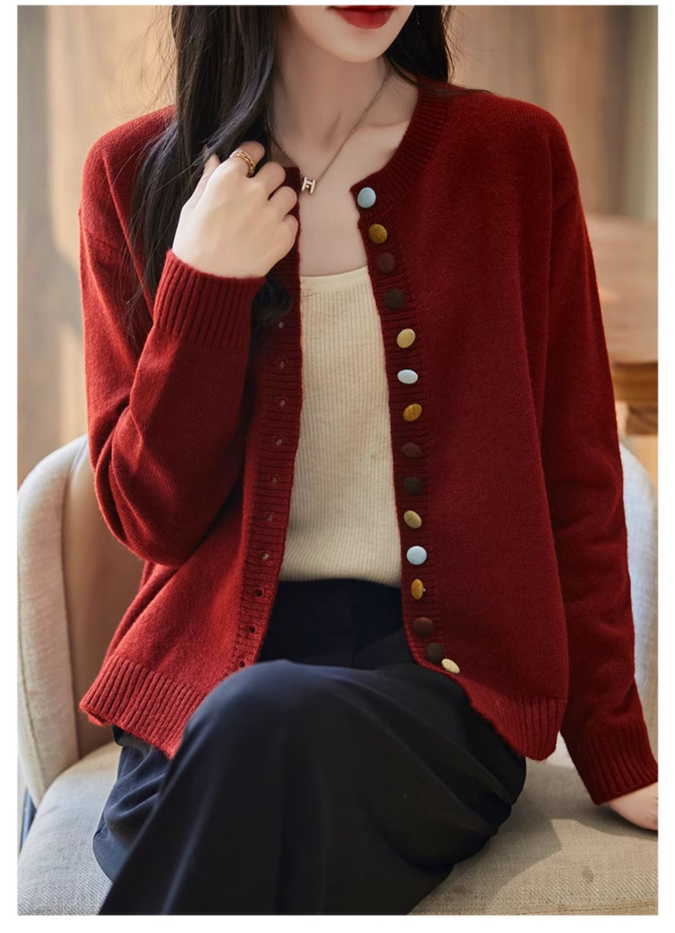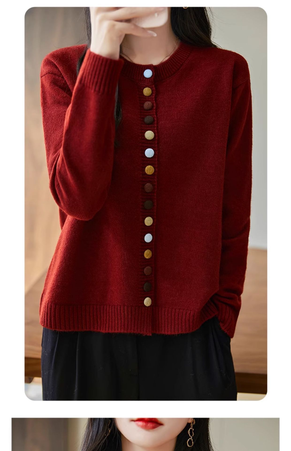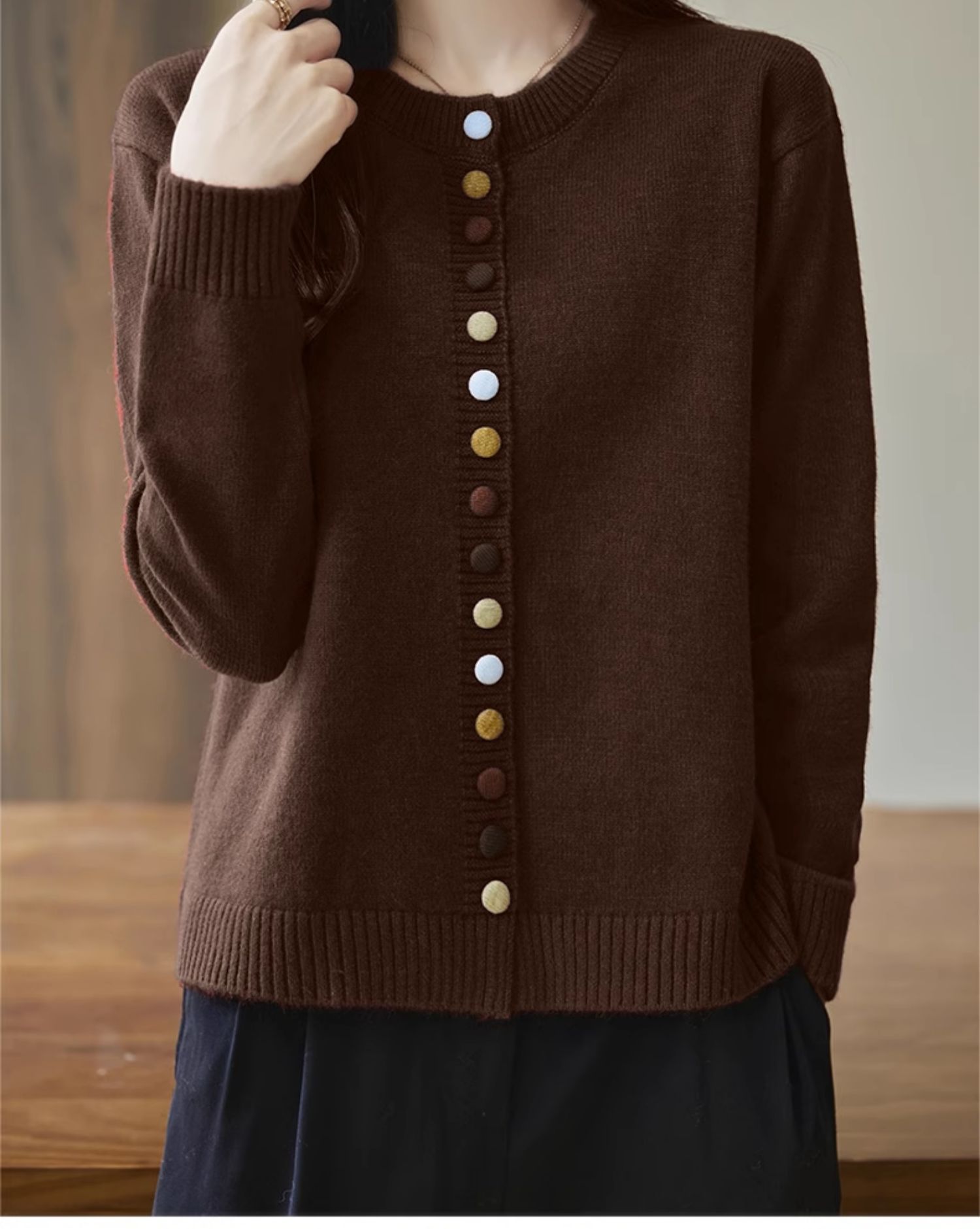 圆领洋气开衫外套女秋季女装彩色扣子撞色文艺范宽松百搭针织上衣