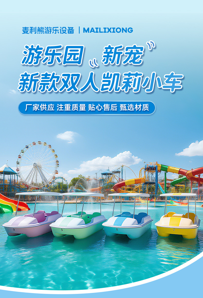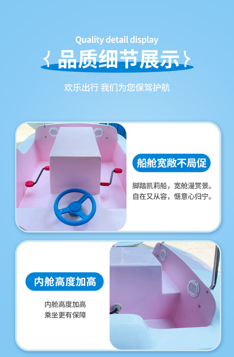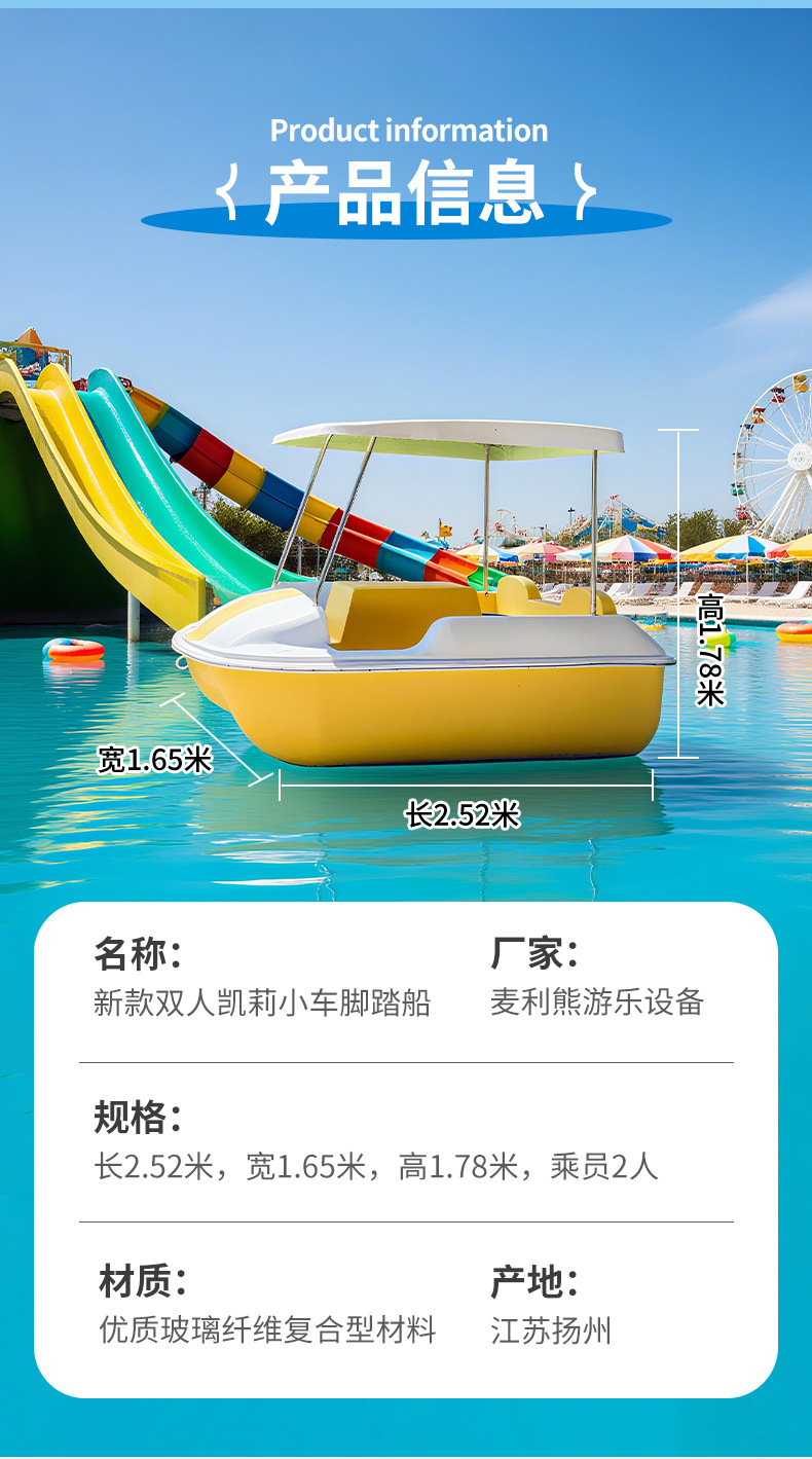 新款双人凯莉小车脚踏船豪华自排水公园游船2人景区玻璃钢脚蹬船