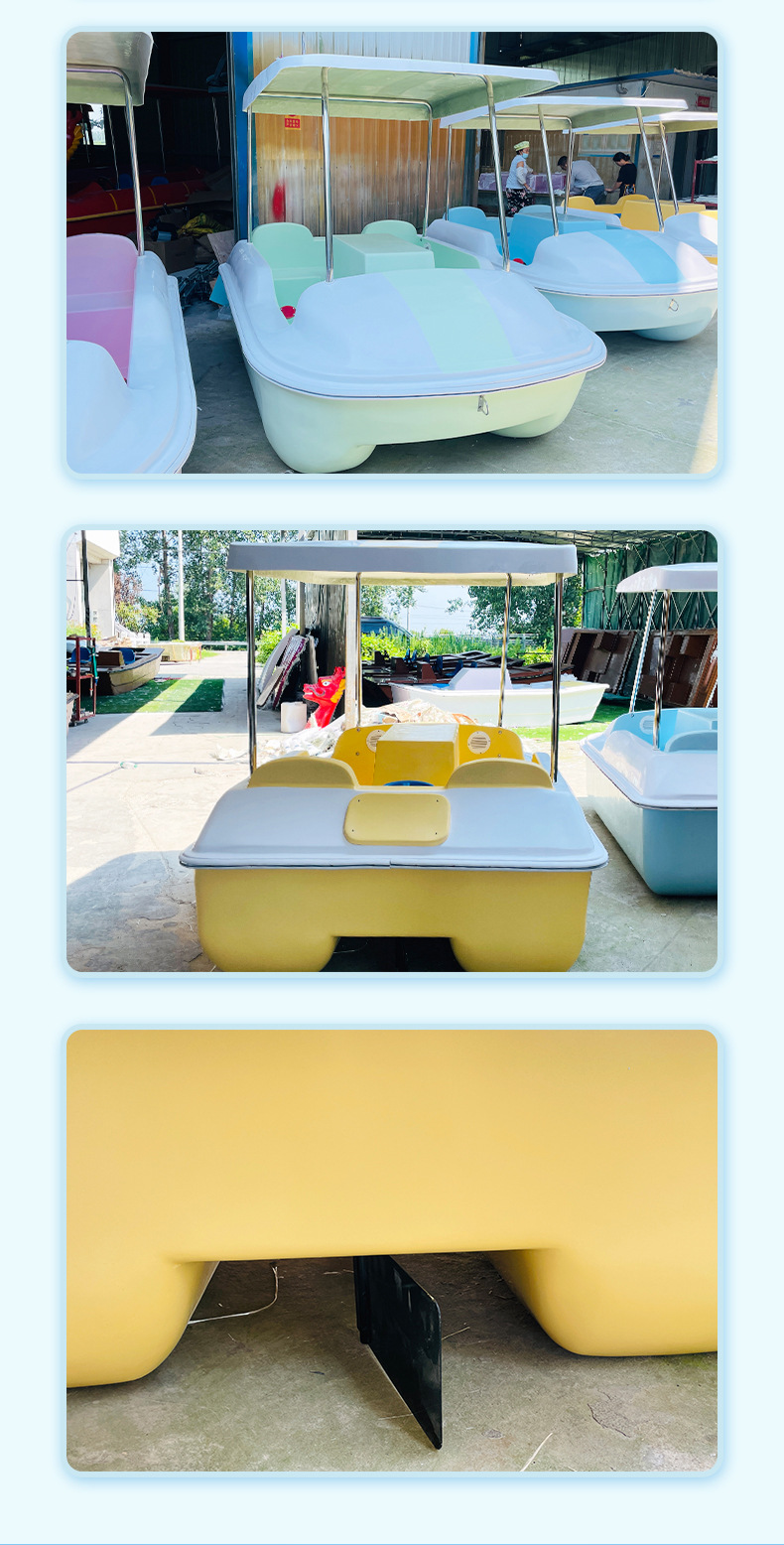 新しい黄色のペダルボート、景勝公園、水上クルーズ、4人用アンティークグラスファイバー風景ボート、ペダルボート