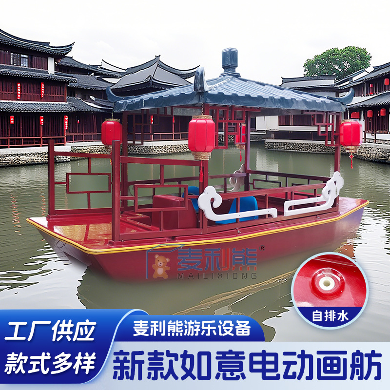 新しいRuyi電動画船、自己排水FRP電動観光船、景勝公園アンティーク画船