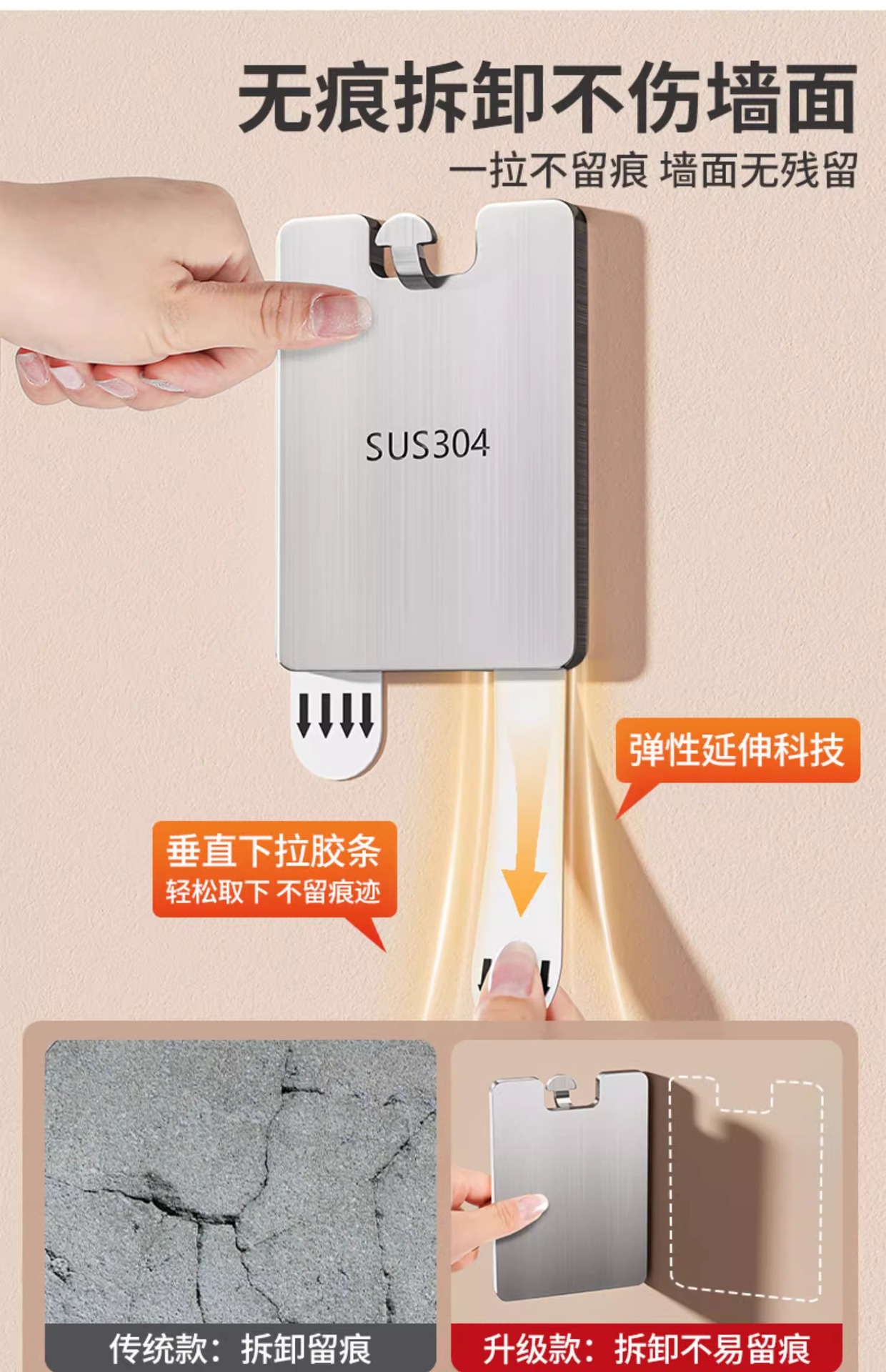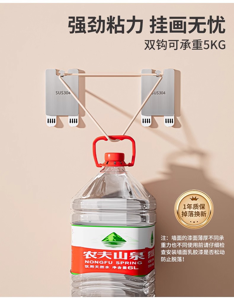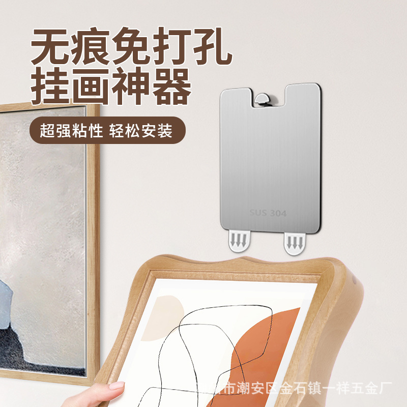 挂画神器免打孔相框专用无痕墙钉贴挂钩不锈钢粘钩魔力扣强力承重