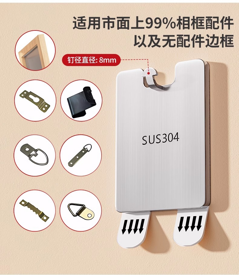 颜色 不锈钢相框挂钩-2个装【一秒挂画 掉落包赔】,原装替换胶条4组【需与背板配套使用】