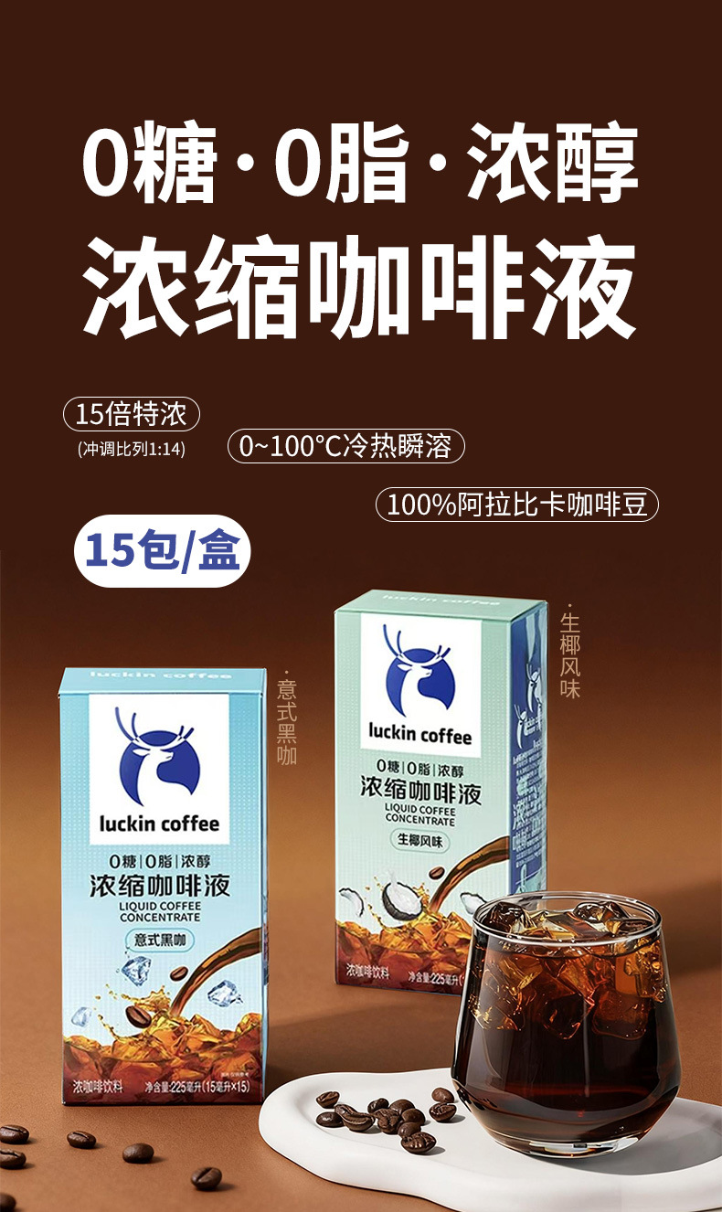 瑞幸咖啡浓缩液15ml速溶冰意式黑咖美式无糖生椰拿铁浓缩咖啡液