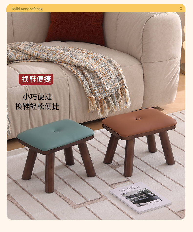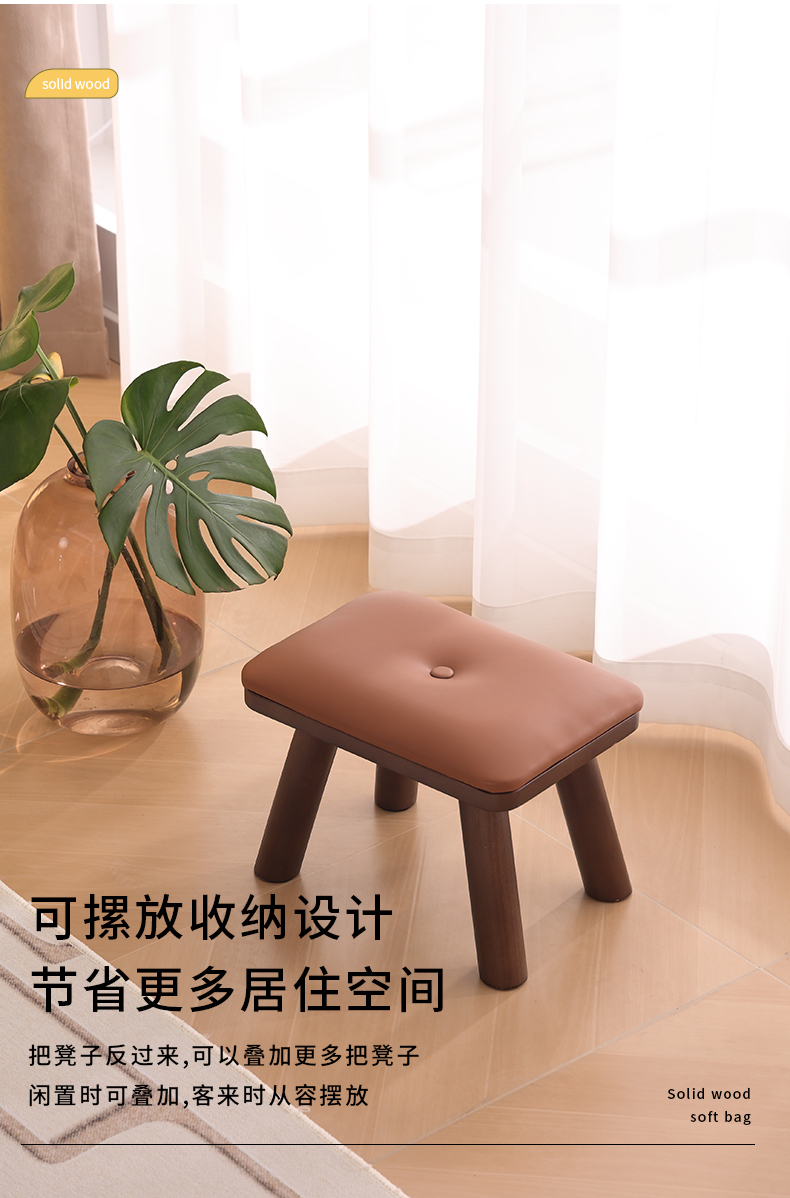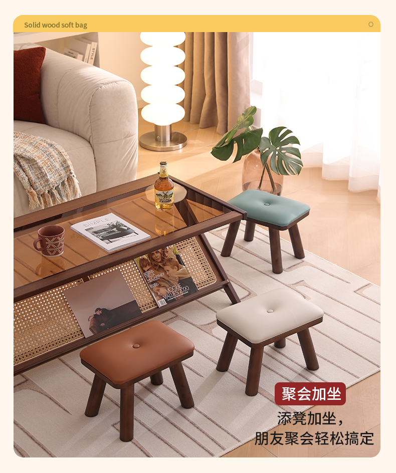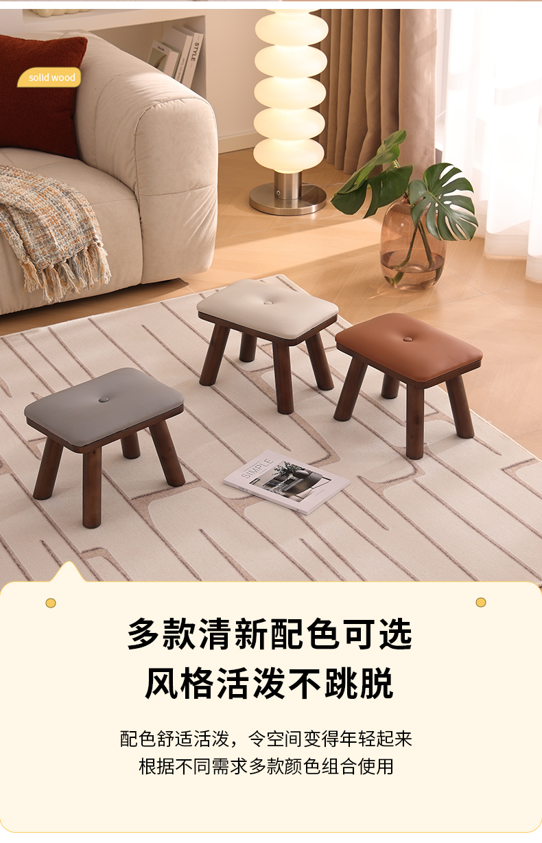 实木小凳子矮凳家用客厅茶几沙发网红小板凳方凳软坐垫门口换鞋凳