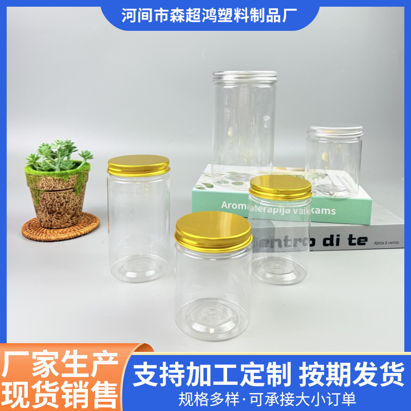 アルミ蓋プラスチック缶透明密封缶ペットプラスチック缶密封プラスチック包装缶広口ボトルプラスチック保存瓶