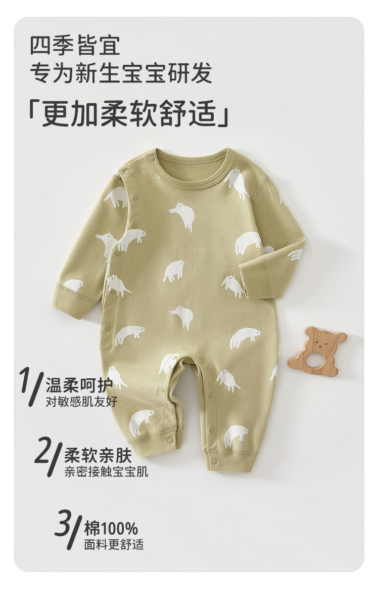婴儿连体衣纯棉无骨春秋宝宝长袖外出爬服新生儿哈衣安阳婴童装