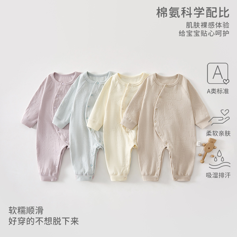 【棉氨提花】婴儿衣服春秋季长袖连体衣a类无骨哈衣婴儿秋季衣服