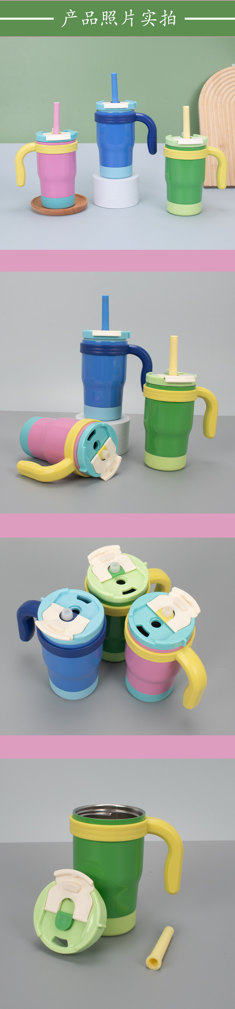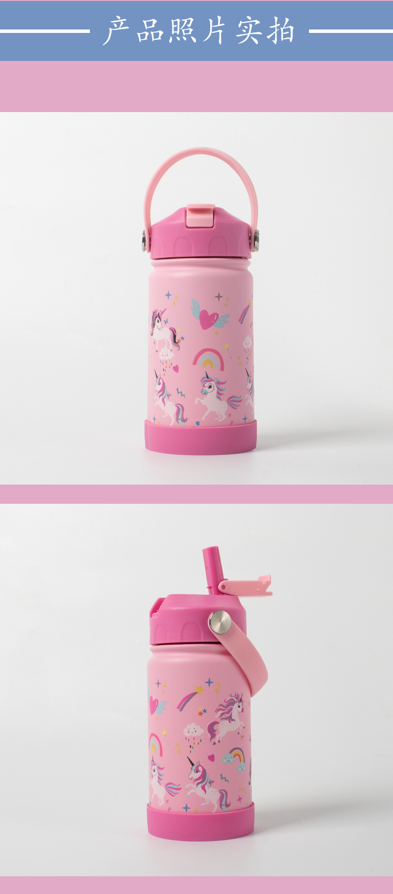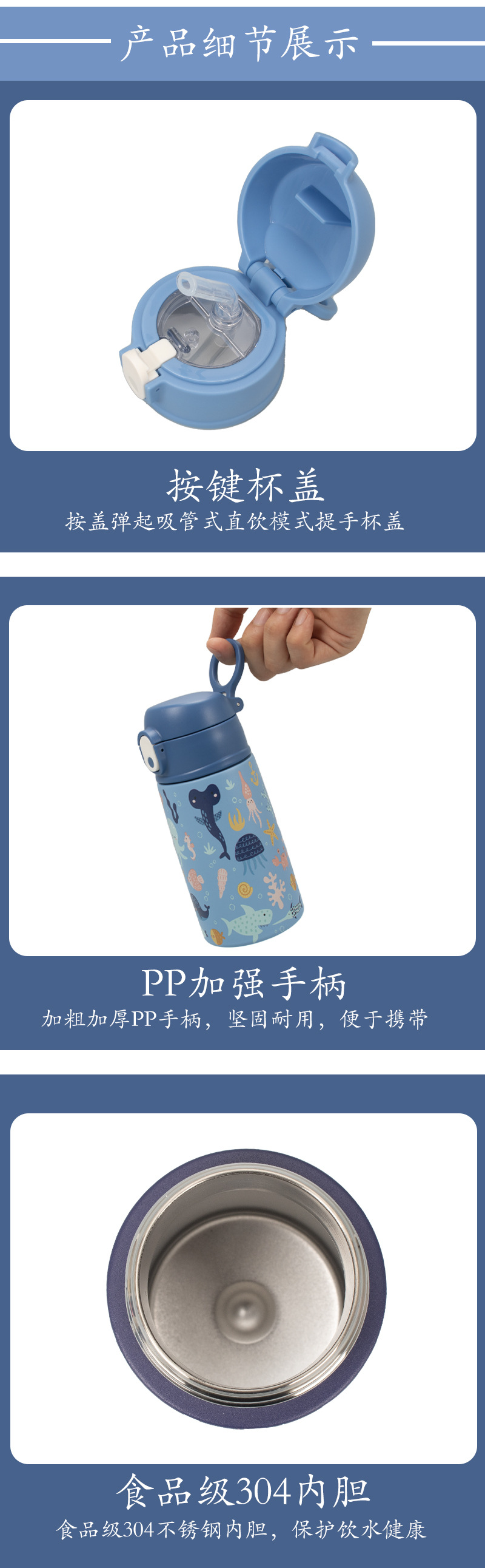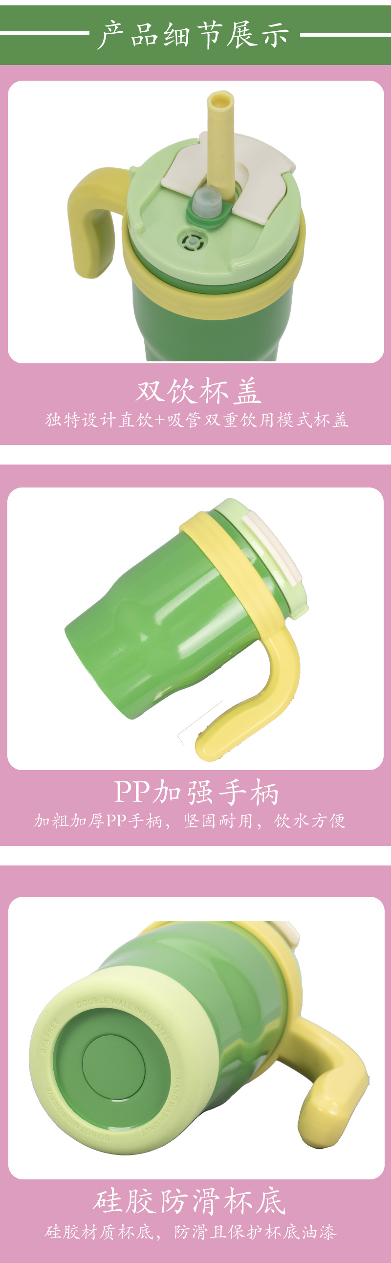 私模新品隐藏式提手硅胶吸嘴可拆卸提手锁扣作用304不锈钢保温杯