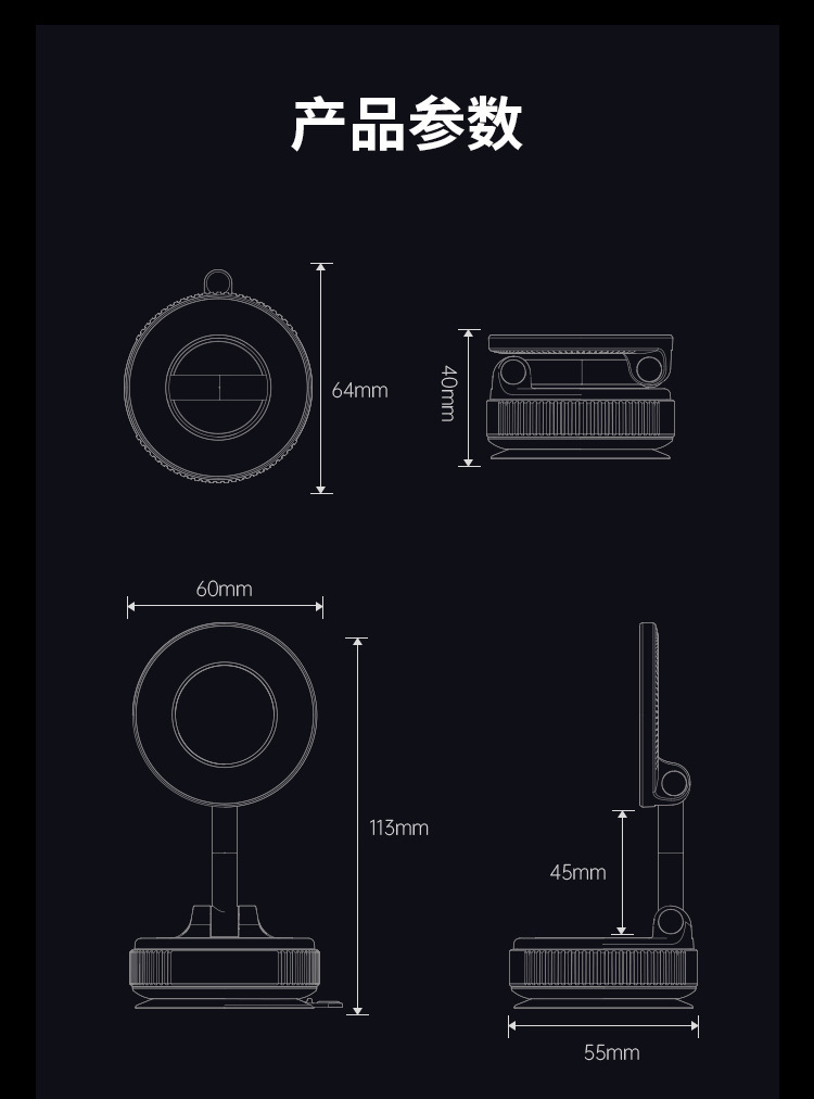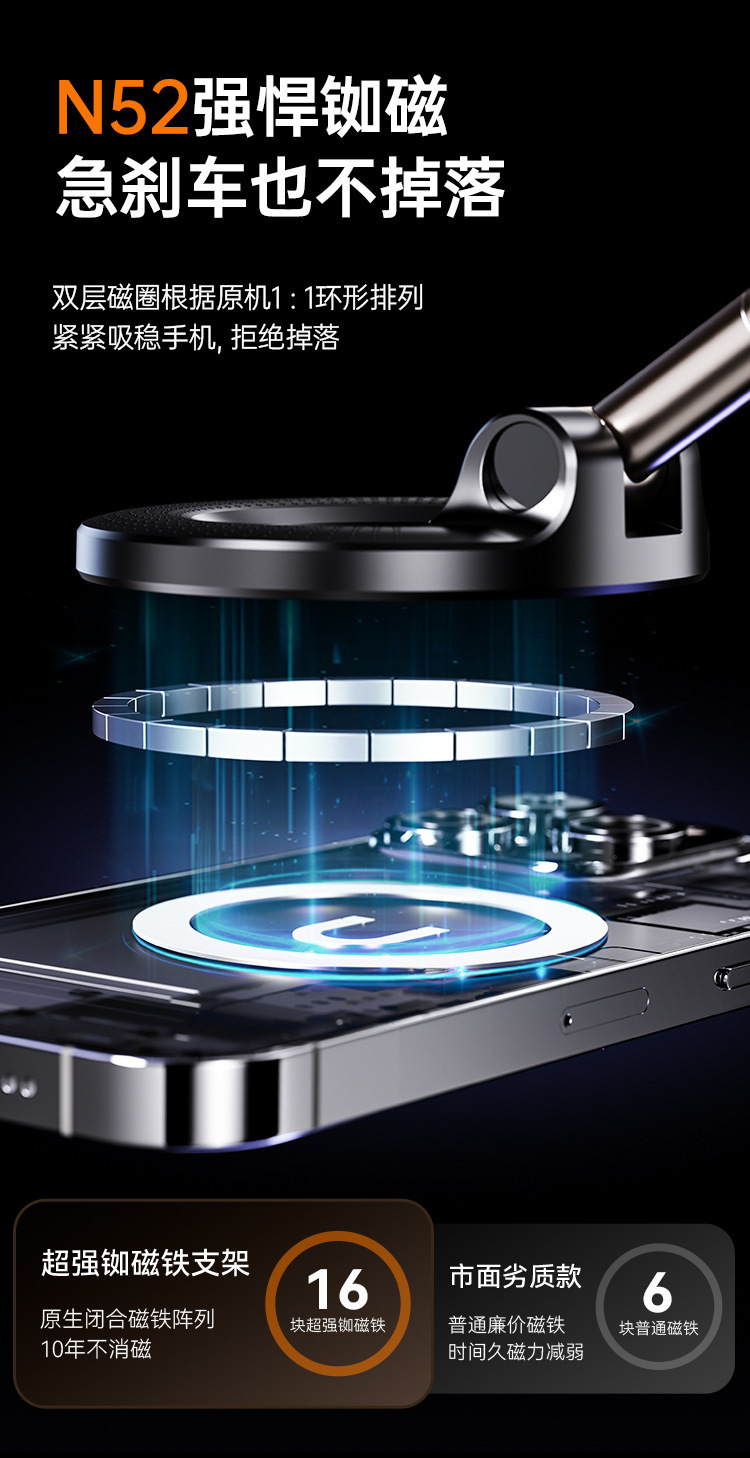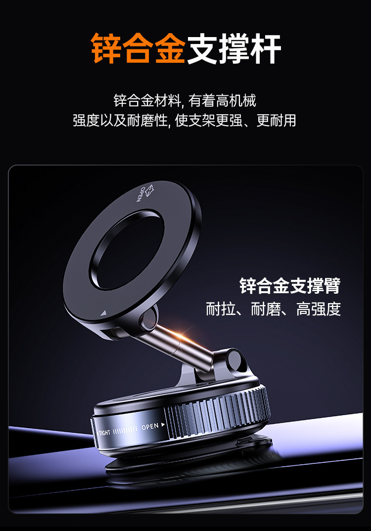 真空吸附强磁吸车载手机支5新吸盘中控台导航防抖用器支架