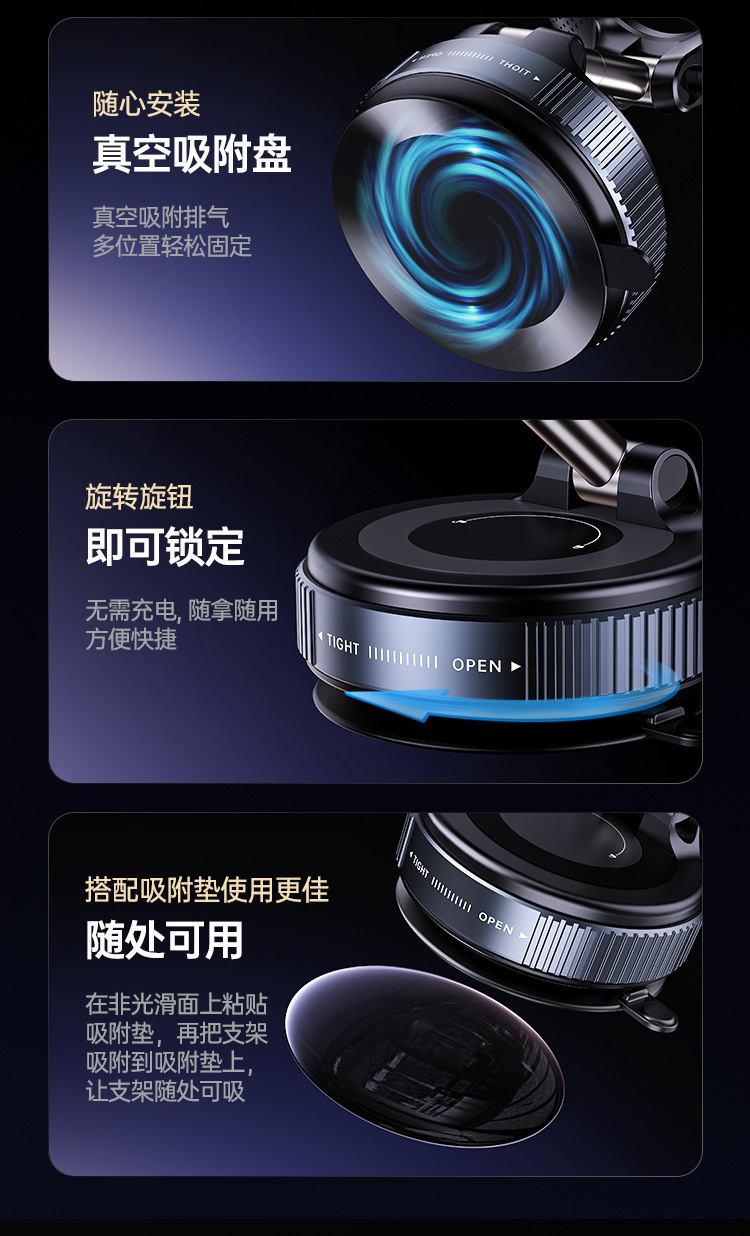 跨境真空磁吸支架2025新款便携式多功能车用车载中控导航吸盘