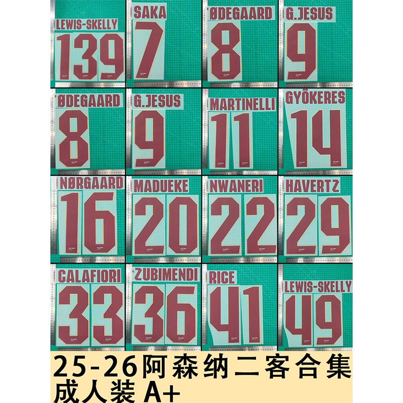 25-26阿森纳欧冠二客合集 成人装 A+球衣号字母烫画号码热转印贴