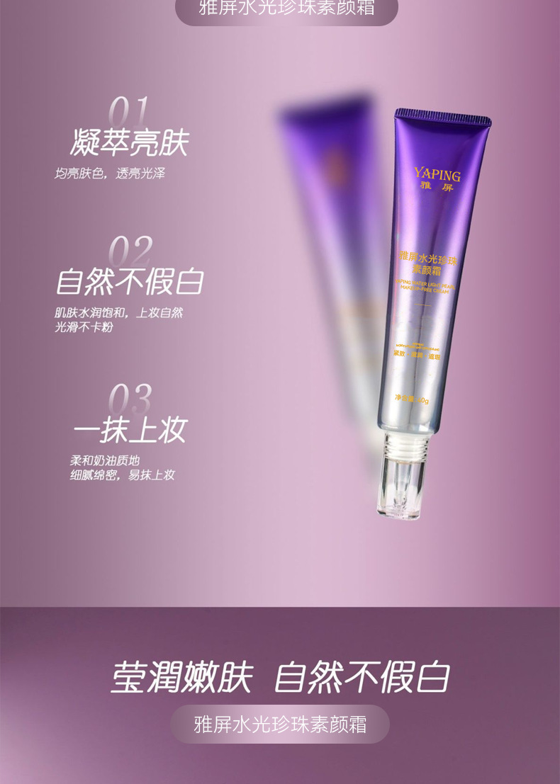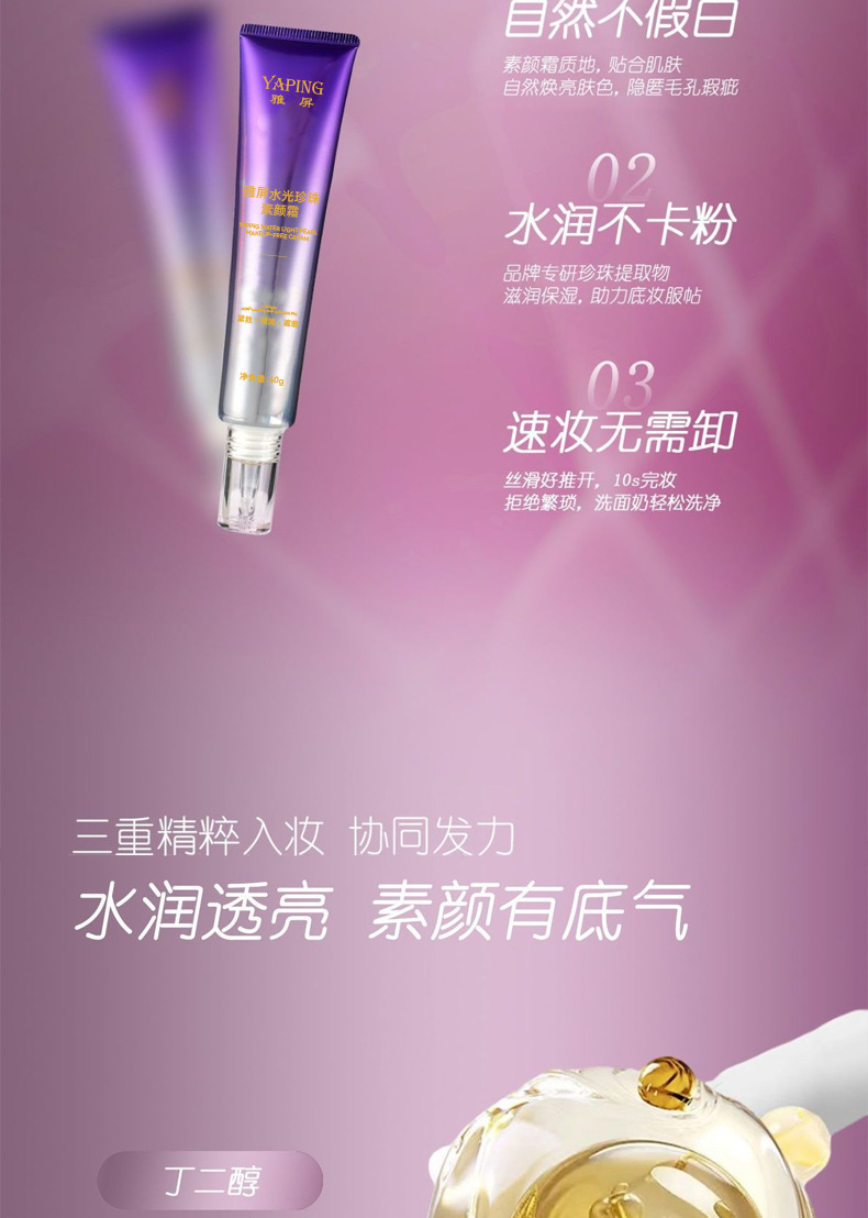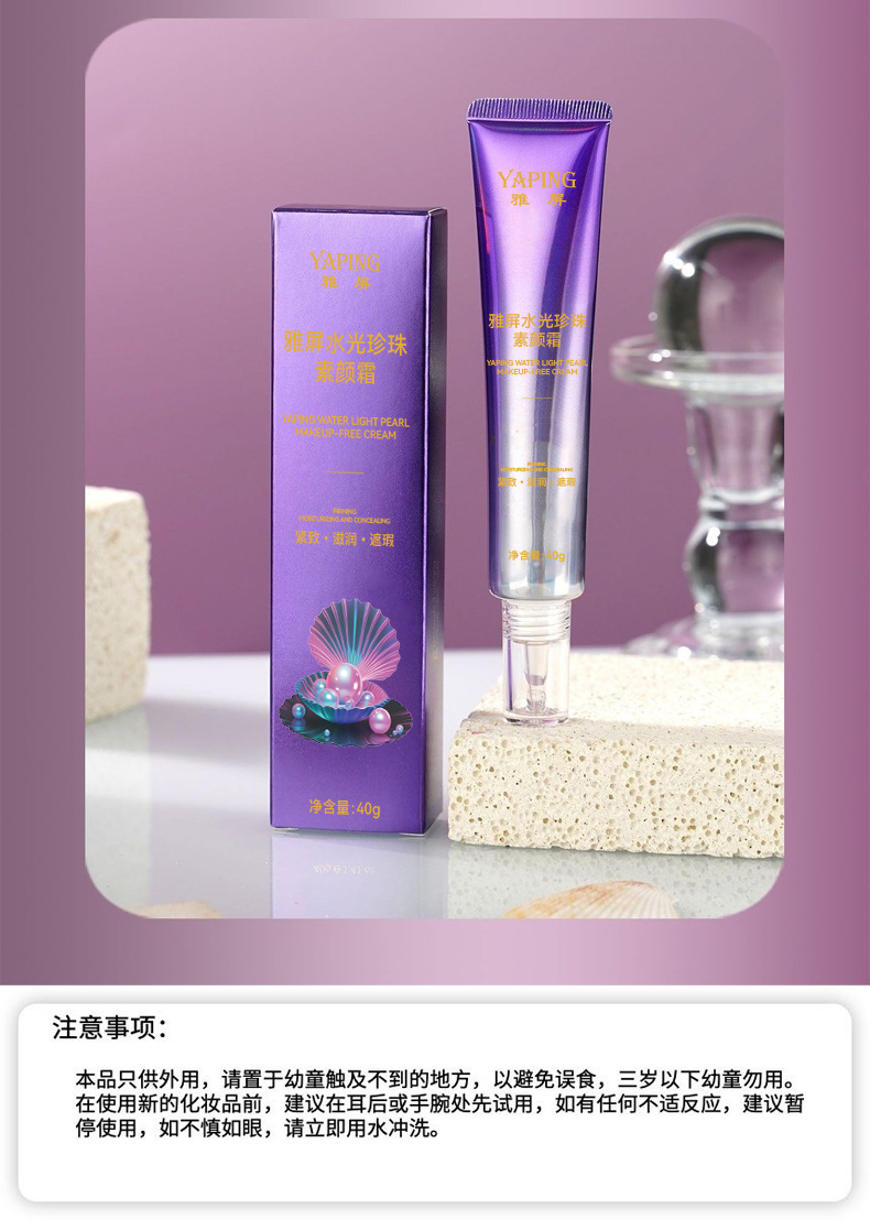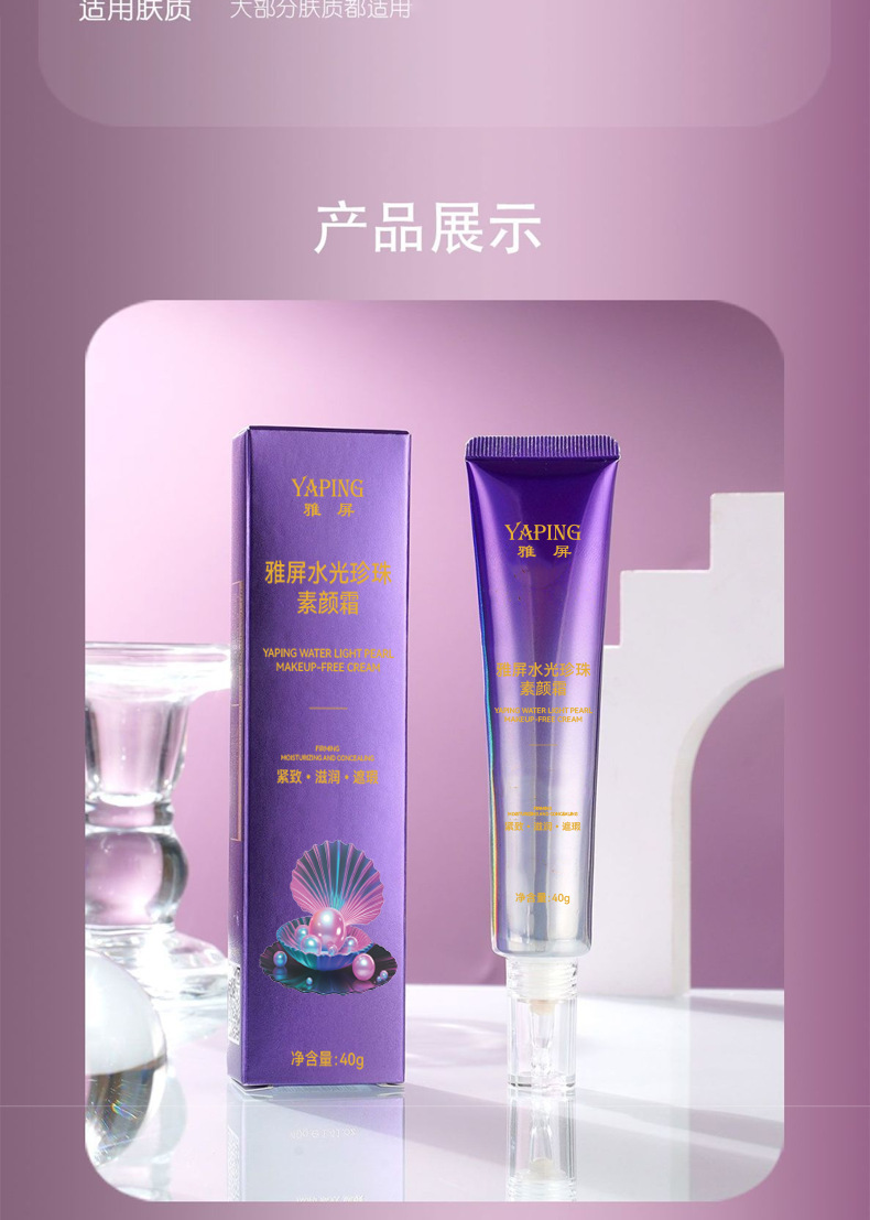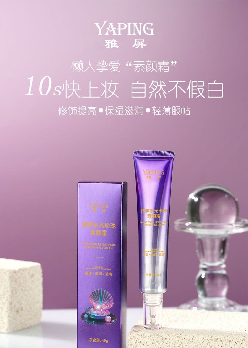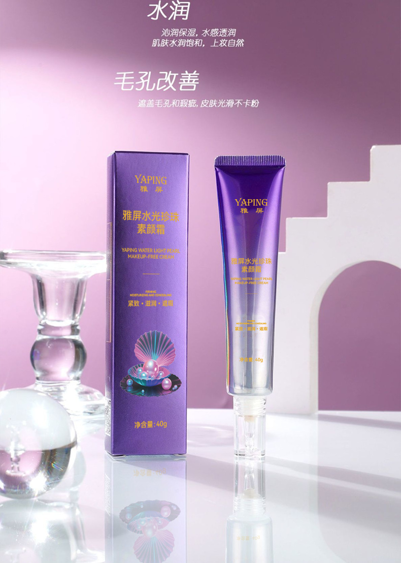 雅屏水光珍珠素颜霜紧致懒人霜水润质地遮瑕自然清不黏腻厂家代发