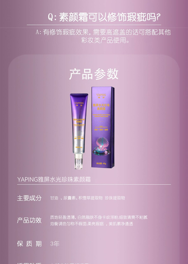 产品名称 雅屏水光珍珠素颜霜
