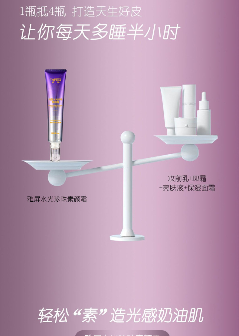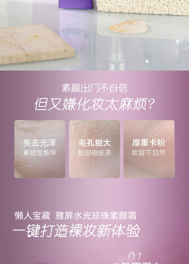 雅屏水光珍珠素颜霜紧致懒人霜水润质地遮瑕自然清爽不黏腻厂家