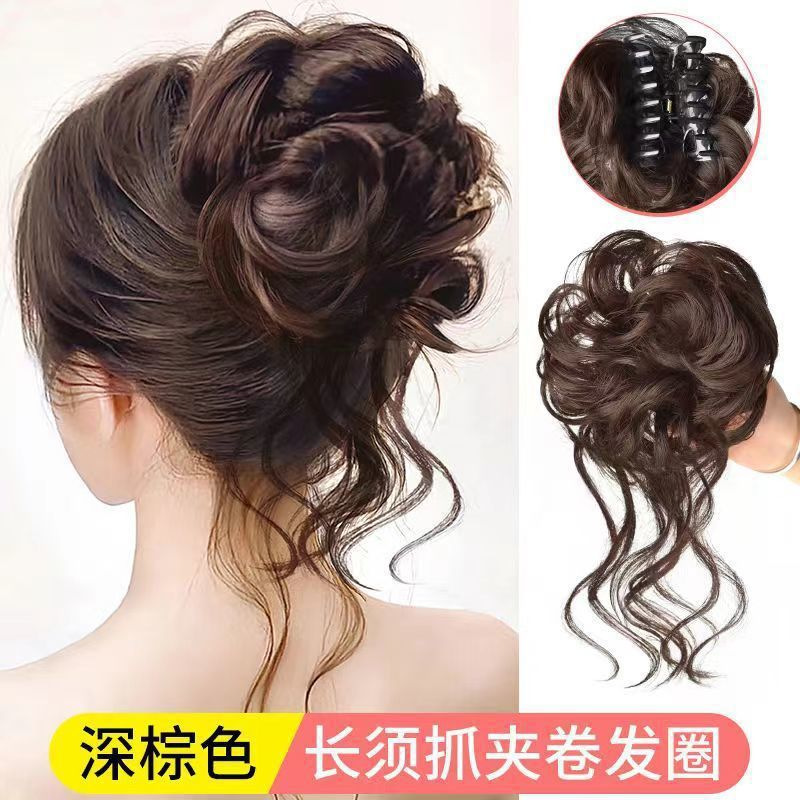 龍ひげ玉頭かつらクリップ女性の娘気質花頭後頭部低結びヘアアーティファクトかつらヘアバッグ