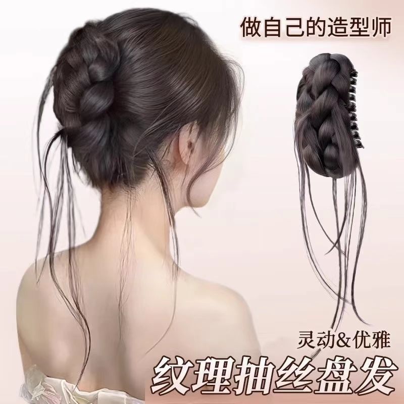 丸子头假发女抓夹千金花苞头仿真发蓬松高颅顶增发量纹理抽丝盘发
