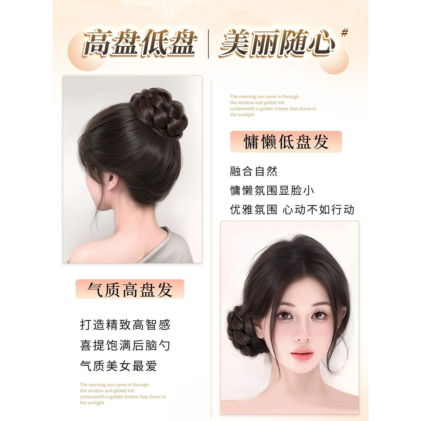 丸子ヘアウィッグ、ヘアゴム、高頭頂部用ヘアクリップ、お団子ヘア、後頭部用ウィッグ、お嬢様風ヘアウィッグ