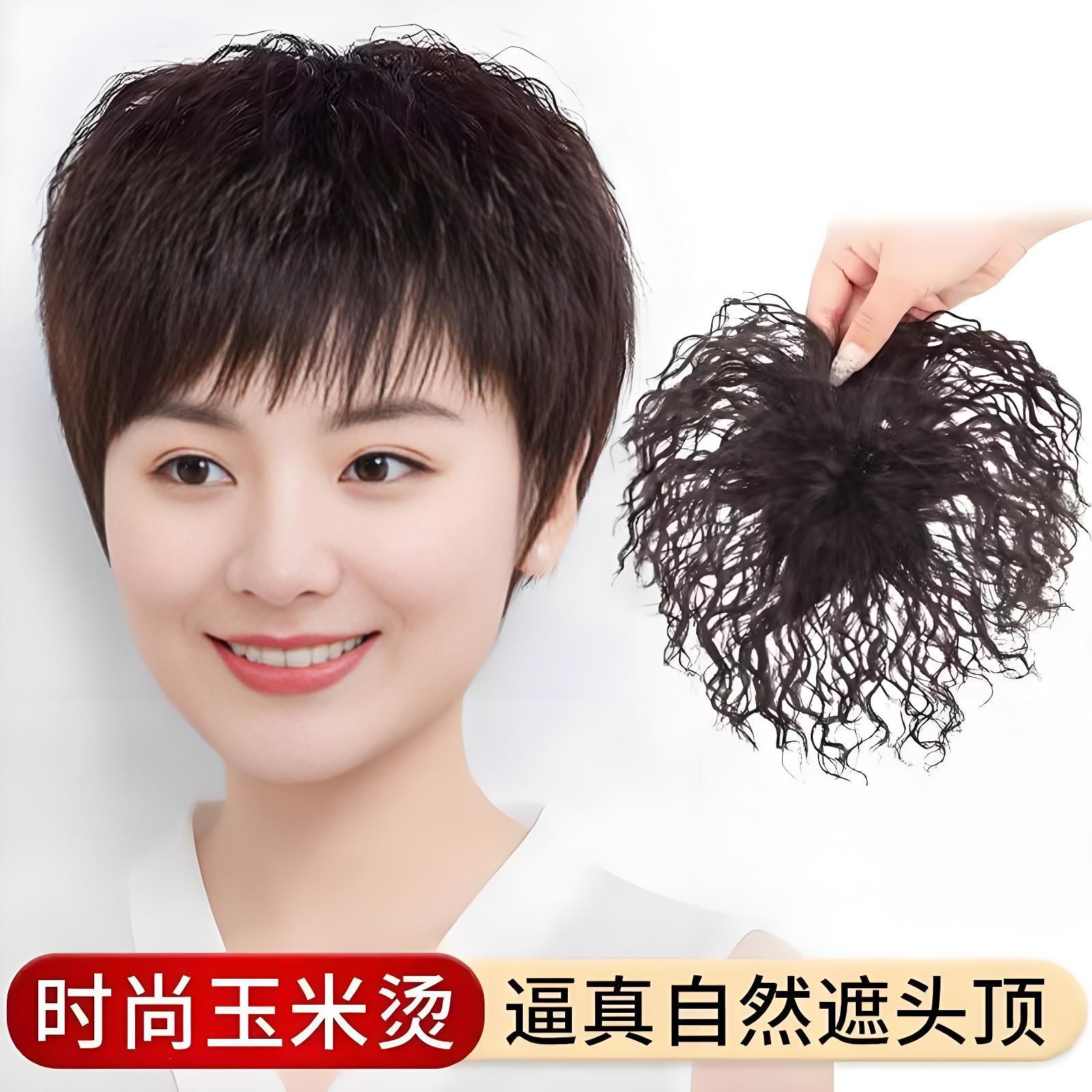 女性のショートカーリーヘア用オーバーヘッドヘアピース、ワンピースコーンパーマ、軽くてふわふわのウィッグピース、シームレスな白髪カバー、ヘアピース