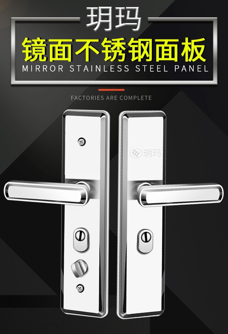 玥玛机械门锁不锈钢防盗门锁家用通用型把手入户门锁面板锁具批发
