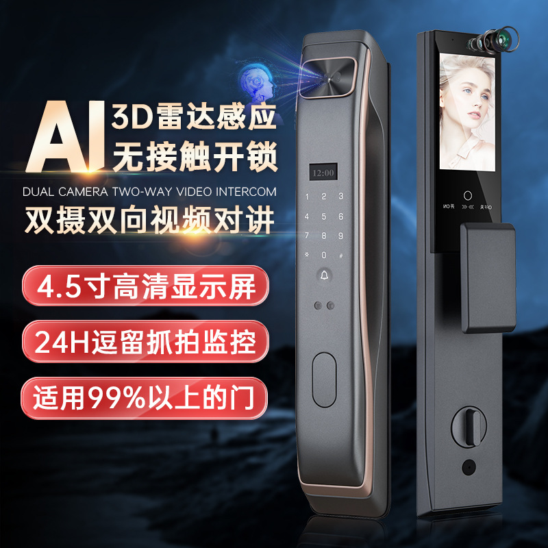 3D顔認識監視指紋ロック家庭用汎用型スマートドアロックデュアルカメラ双方向可視インターホン