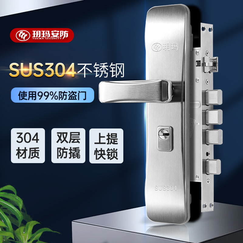 玥玛加厚304不锈钢防盗门锁家用通用型门锁C级铜锁芯防撬门锁批发