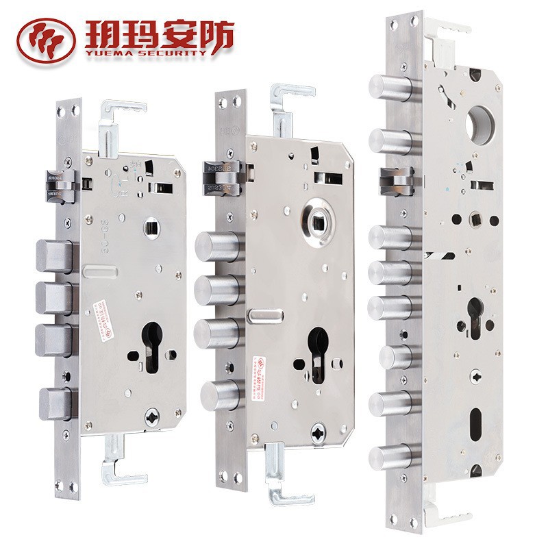 玥玛多功能不锈钢锁体6068方舌圆柱防卡齿轮双活双快防盗门智能锁
