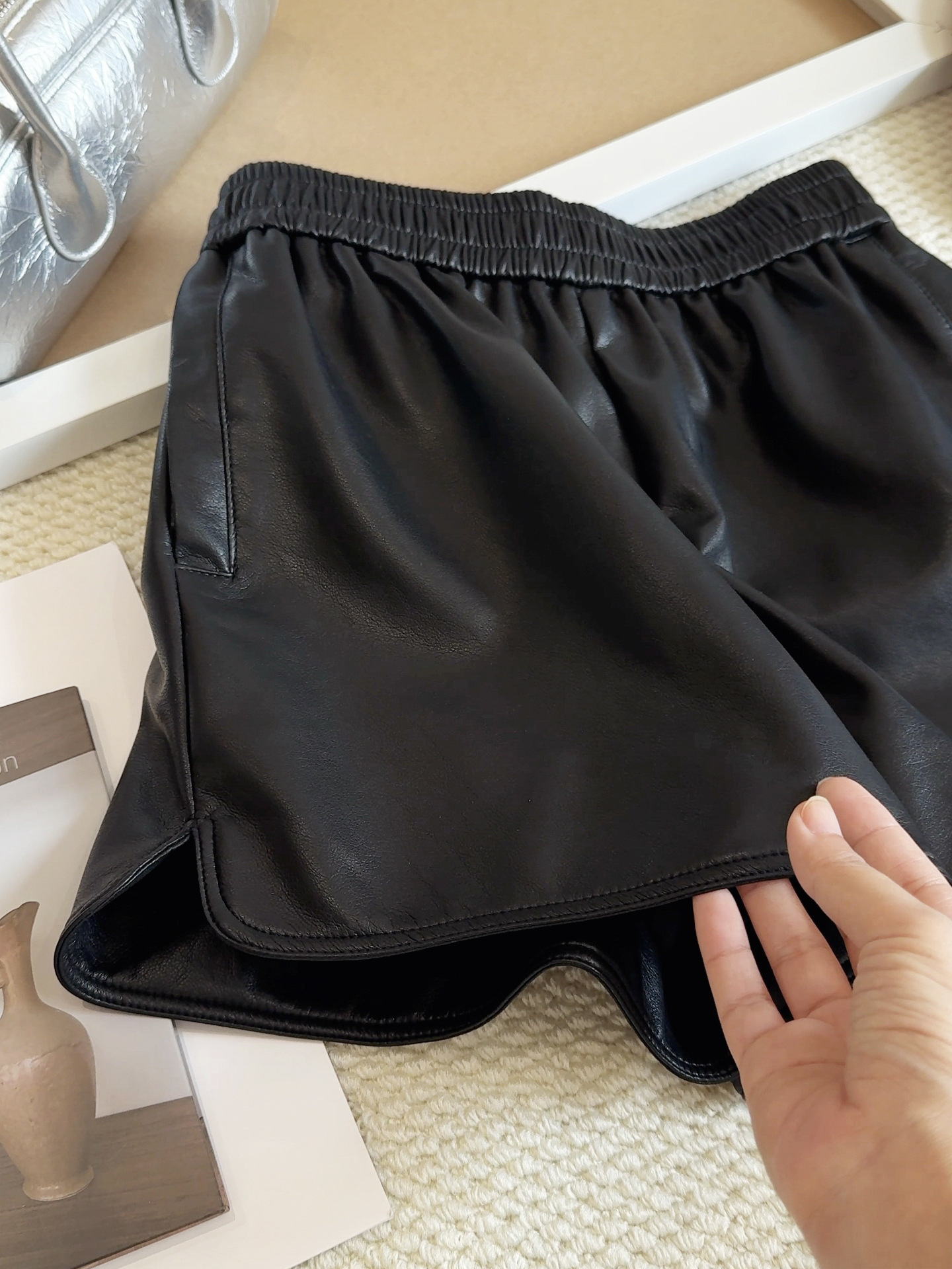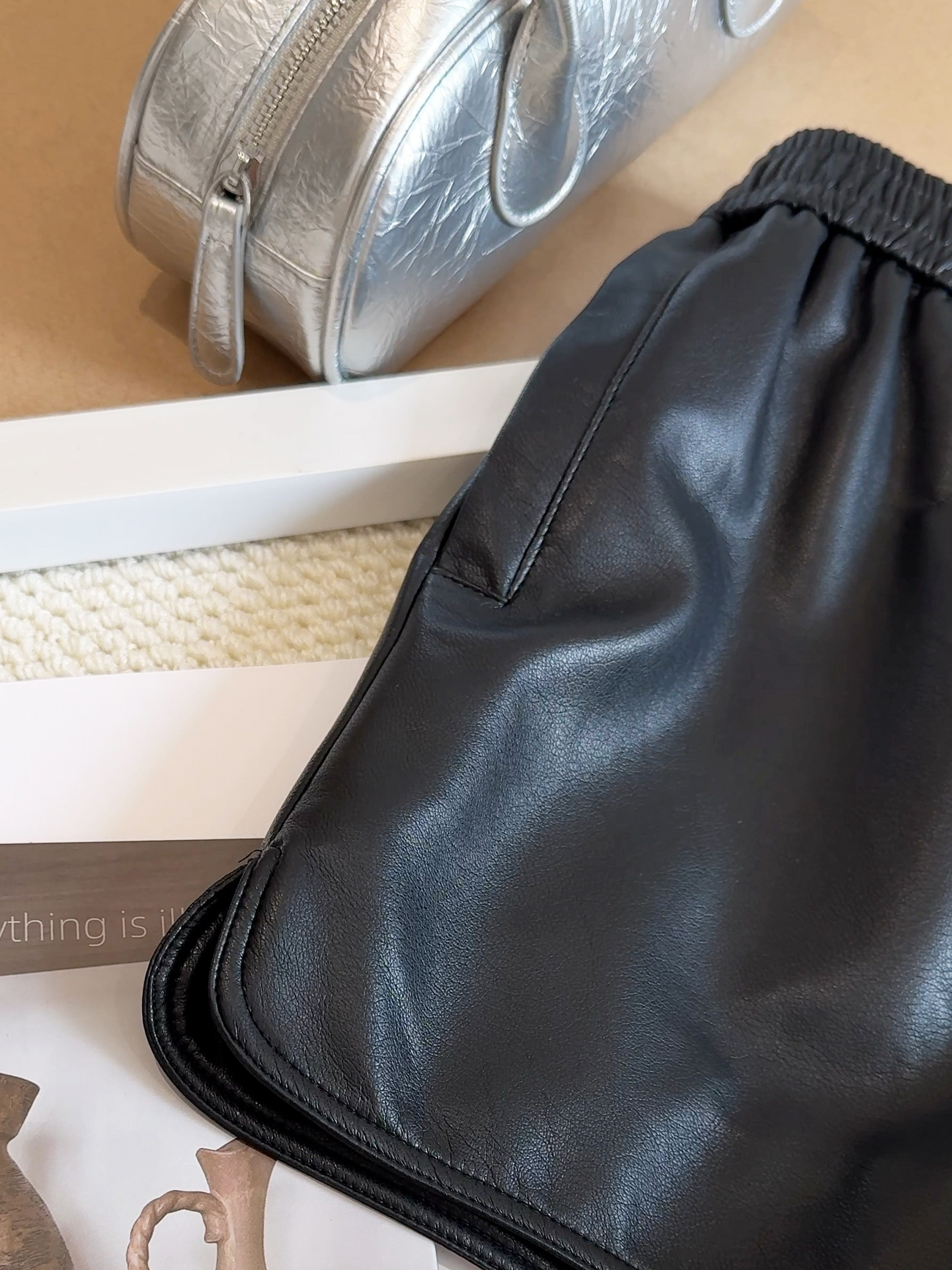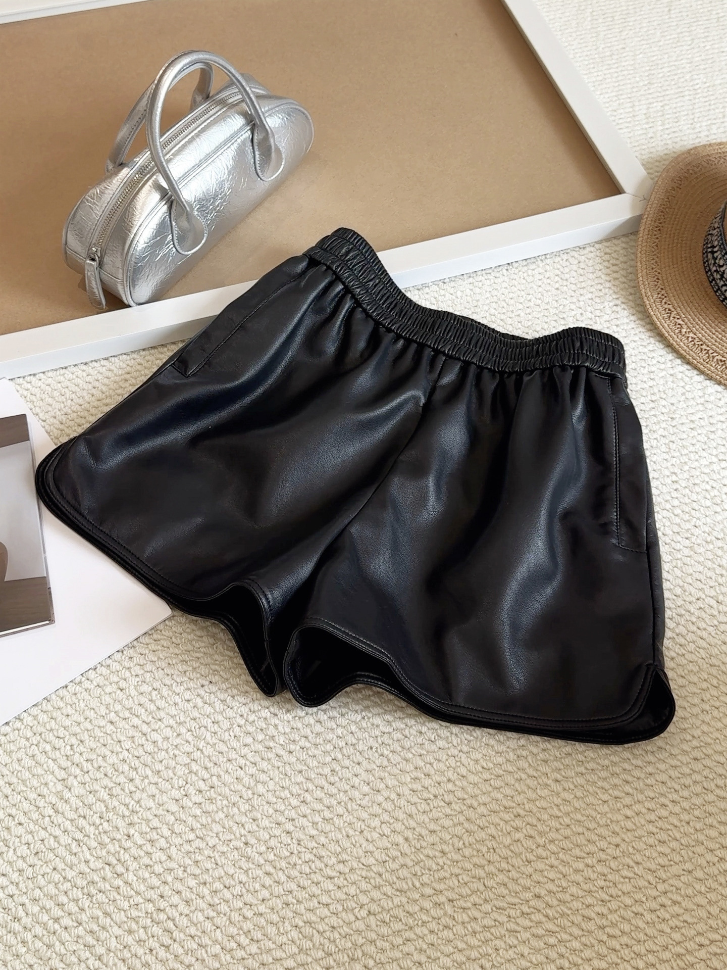 黑色蛋白pu皮高腰短裤女秋冬2025年新款显瘦蕾丝花边休闲a字靴裤