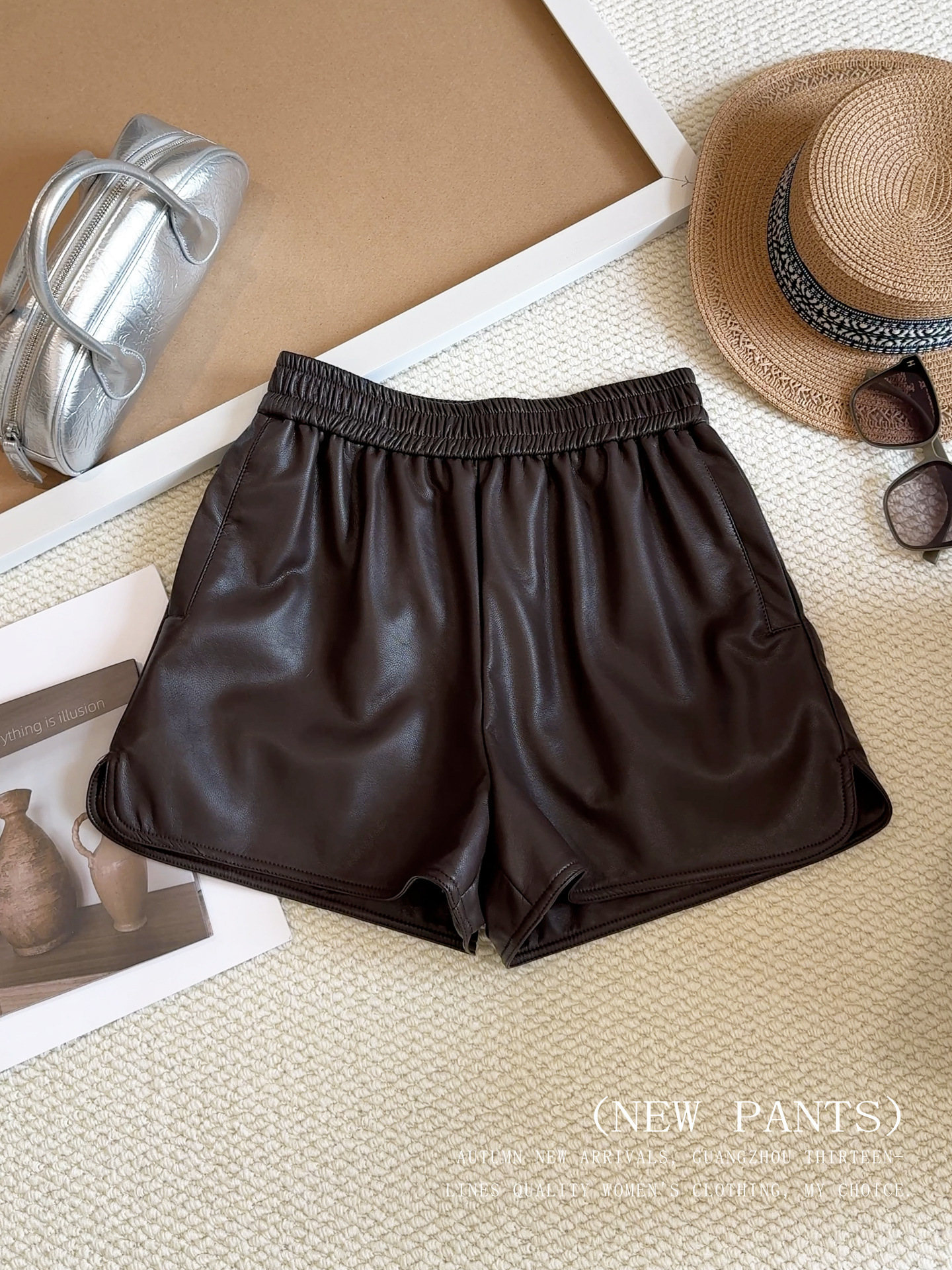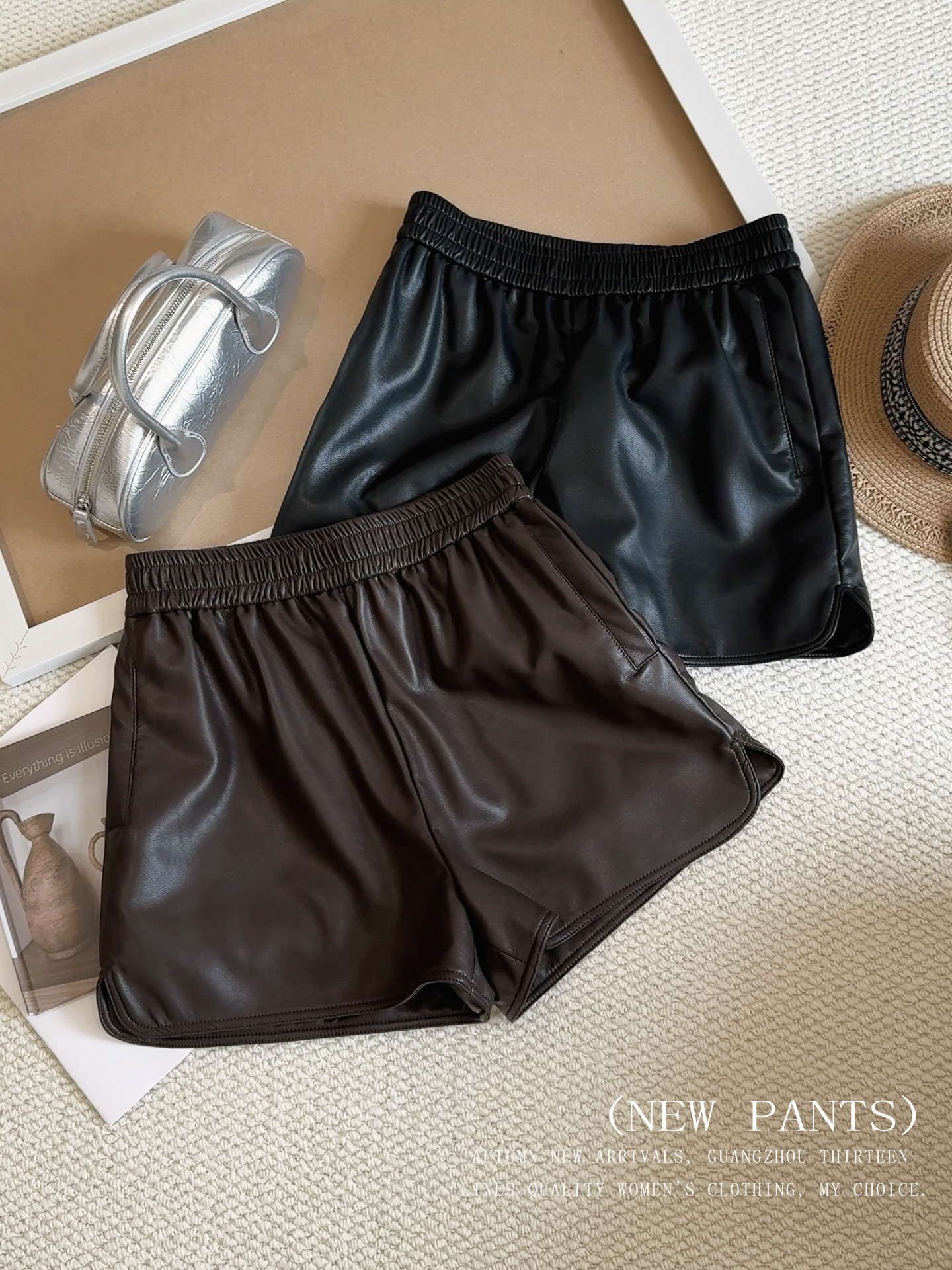 短裤pu皮裤女2025秋冬新款宽松阔腿高腰显瘦时尚百搭外穿打底靴裤